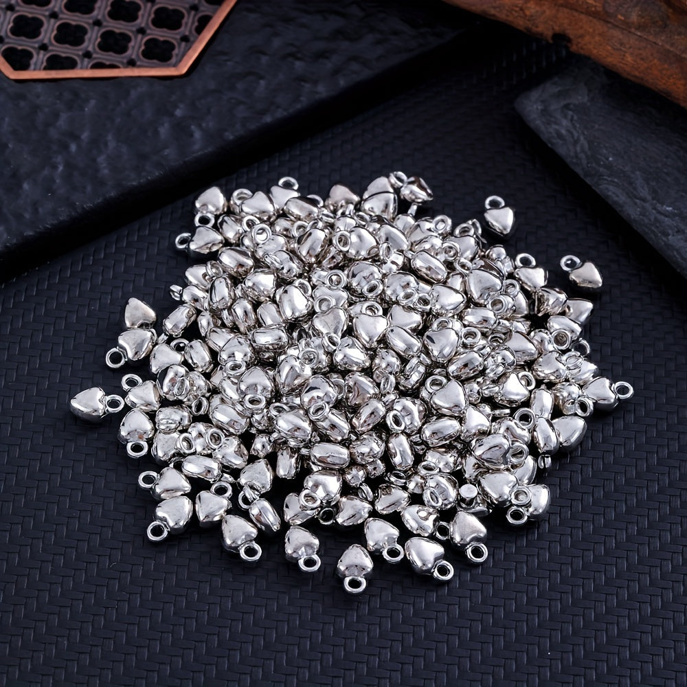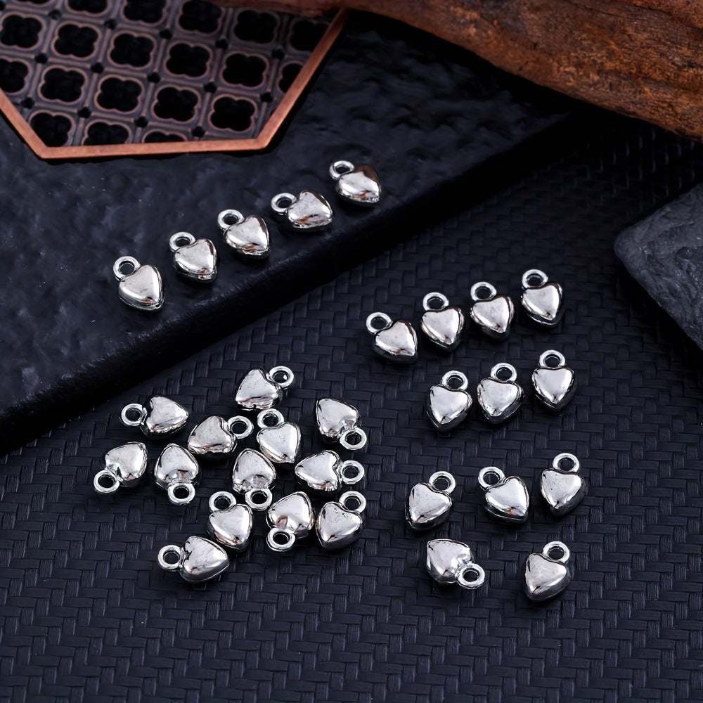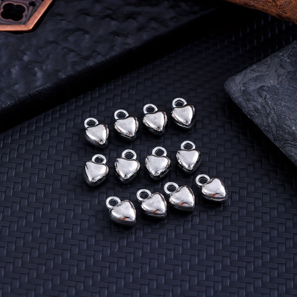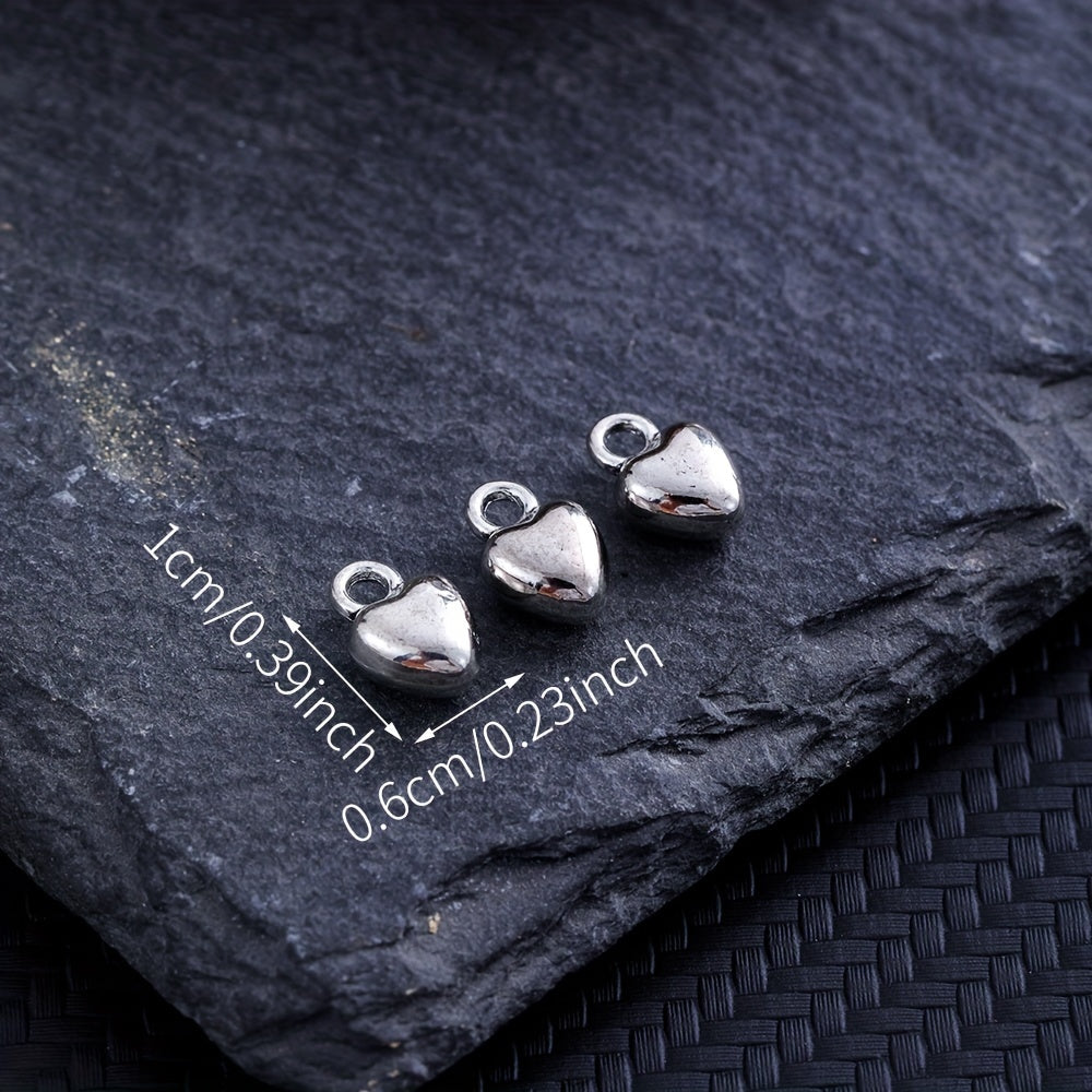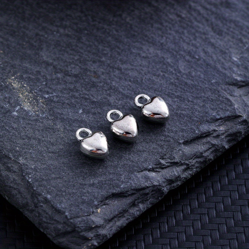 Add a touch of elegance to your handmade jewelry with these silvery electroplated heart shape alloy pendants. Perfect for earrings, bracelets, necklaces, and more.