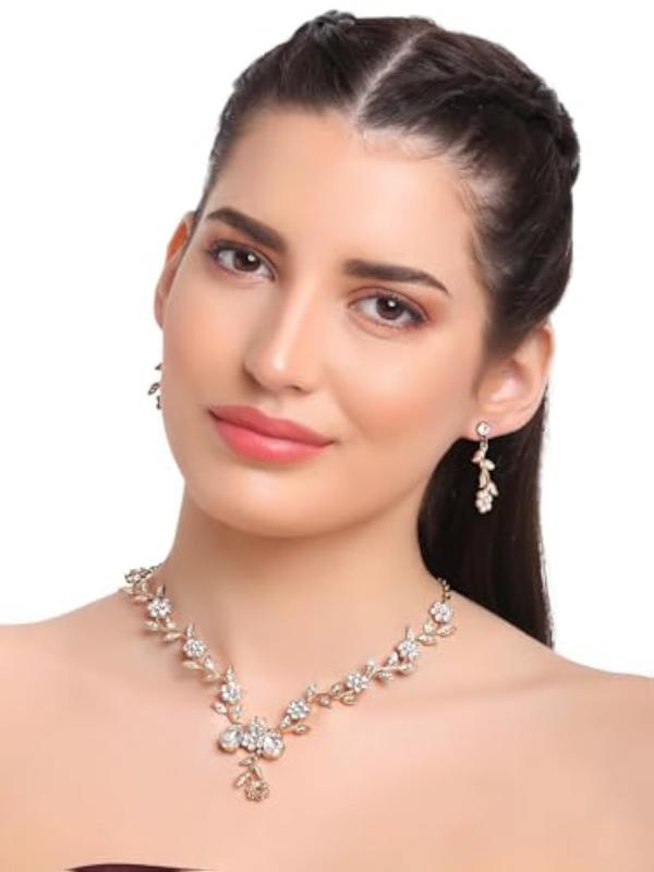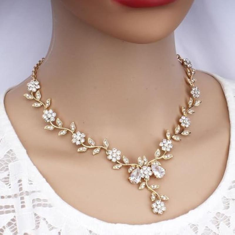 Beautifully crafted 18k gold-plated necklace set with intricate designs.