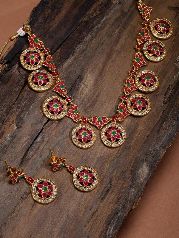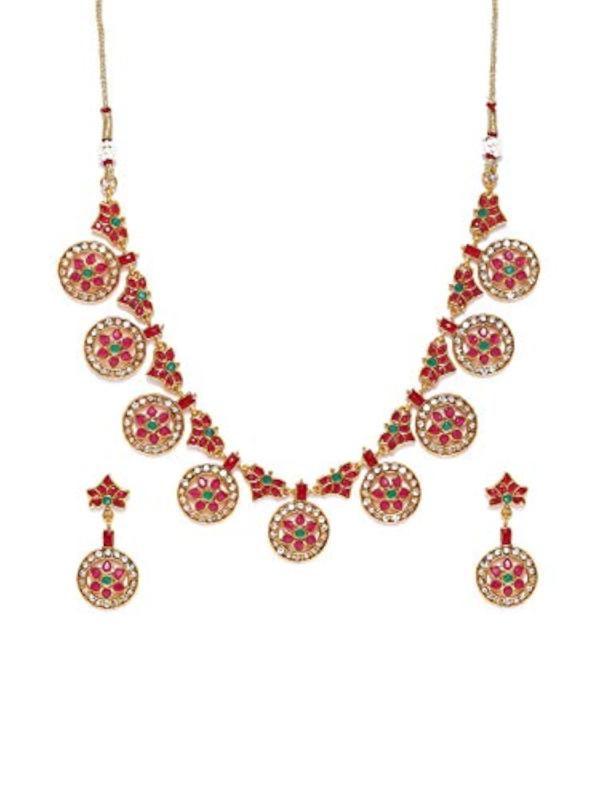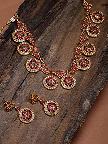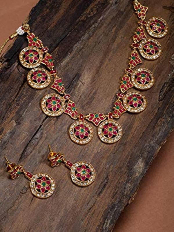 This traditional choker necklace set is perfect for adding a touch of elegance to your outfit. It includes a beautiful choker and matching earrings.