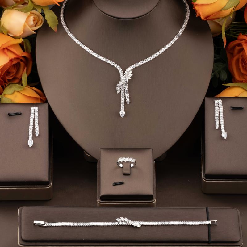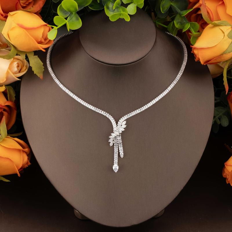 This stunning jewelry set features high-quality cubic zirconia vines, perfect for adding elegance to women's wedding attire. It is suitable for banquets and special occasions.