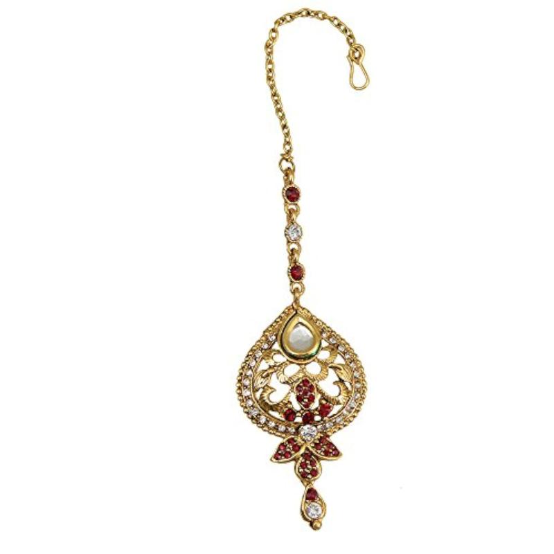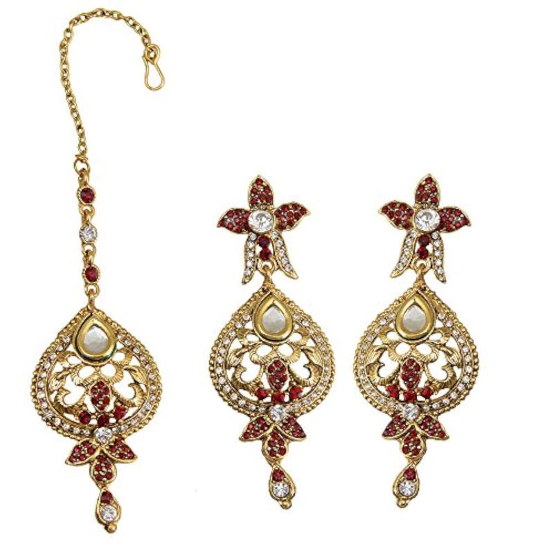Complete your ethnic look with this stunning earring maang tika set. Perfect for weddings and special occasions.