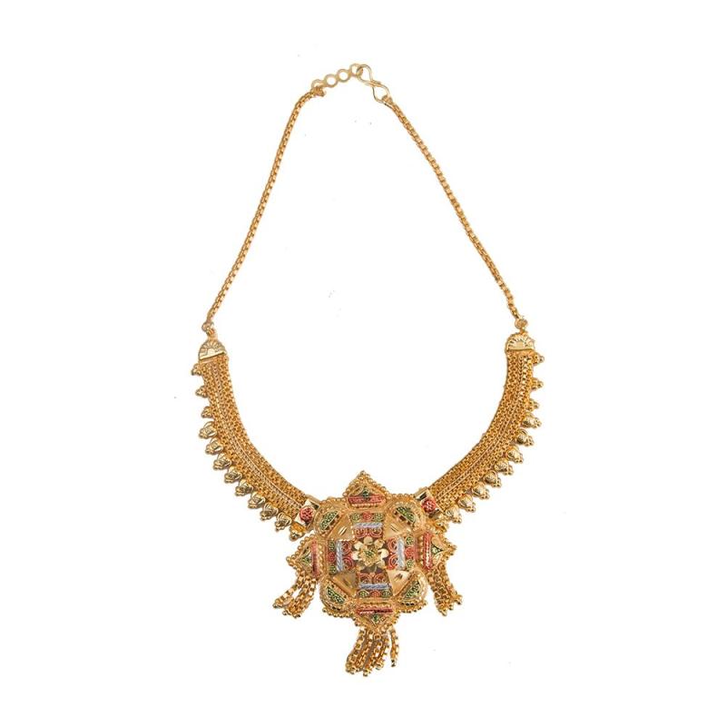 Add a touch of elegance to your outfit with this stunning gold pendant necklace.