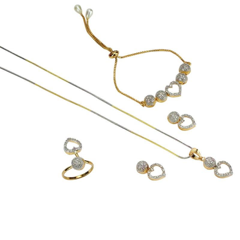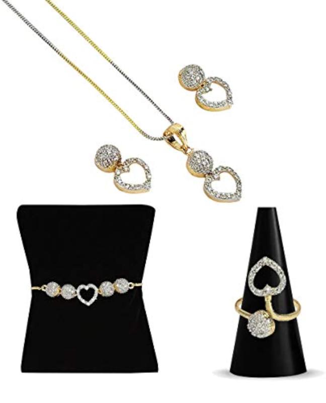 Complete your look with this stunning jewellery set that includes a necklace set, earrings, bracelet, and ring. Perfect for any occasion!