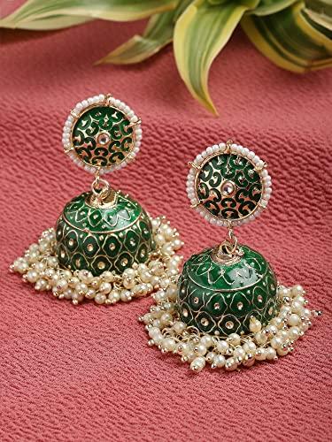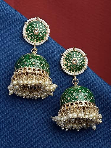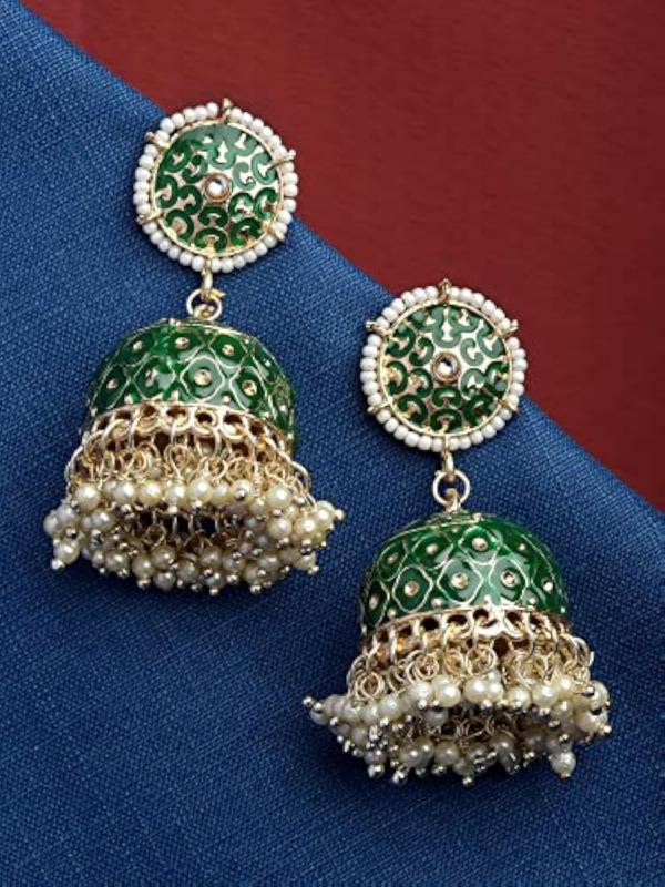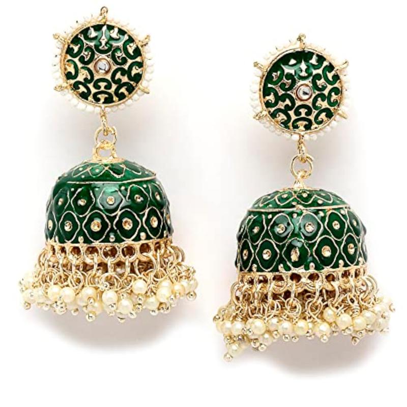 Complete your traditional look with these beautifully designed jhumka earrings. Perfect for any occasion or outfit.