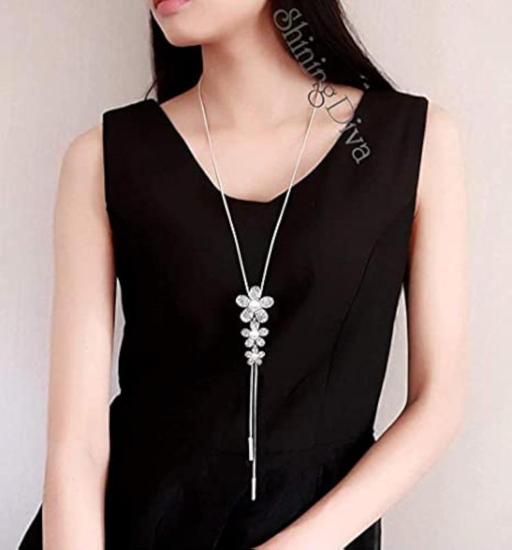 Add a touch of style to your party outfit with this elegant pendant necklace featuring a long chain design.