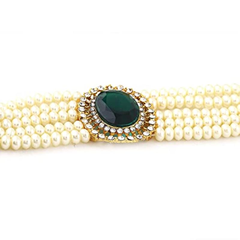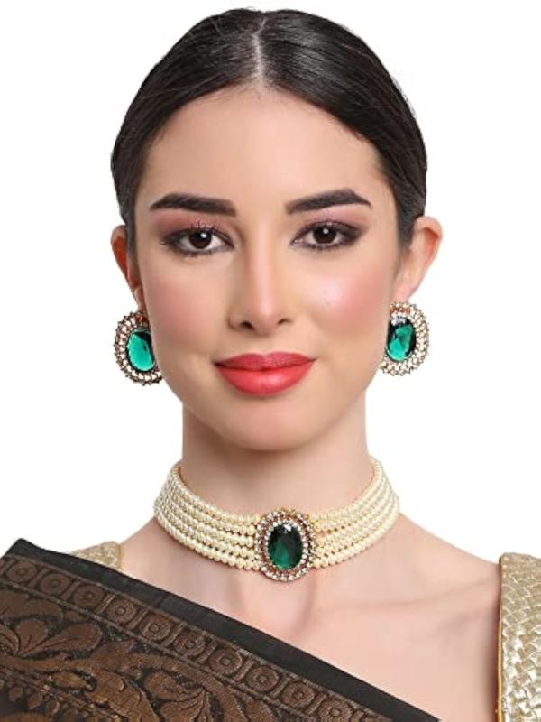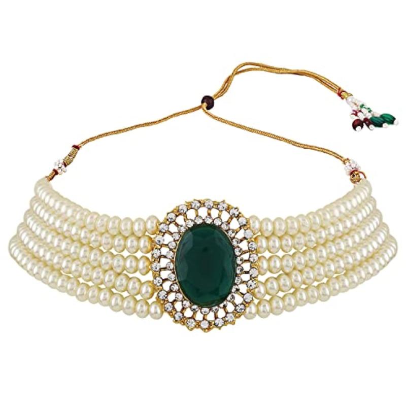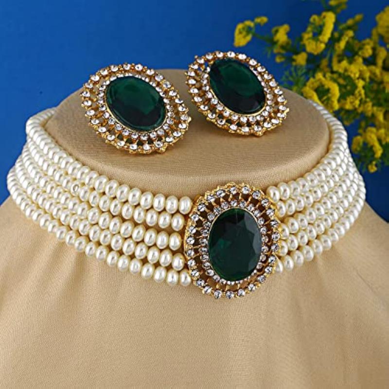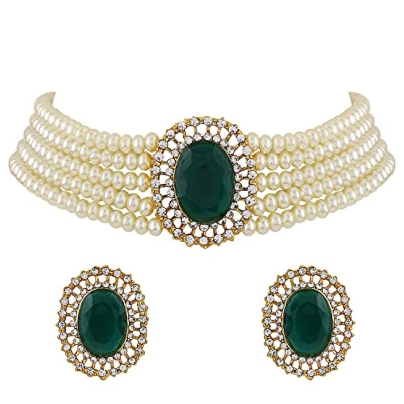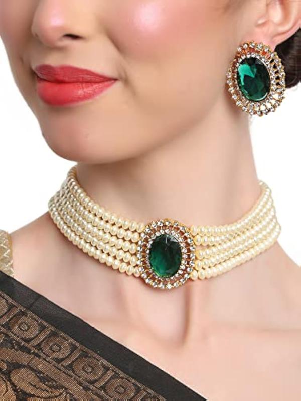 Enhance your outfit with this stylish choker necklace set featuring traditional pearls.