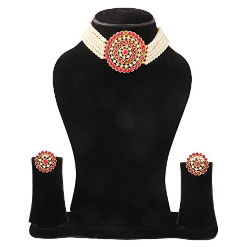 Enhance your traditional look with this stylish jewellery set. This set features intricate design and high-quality plating.