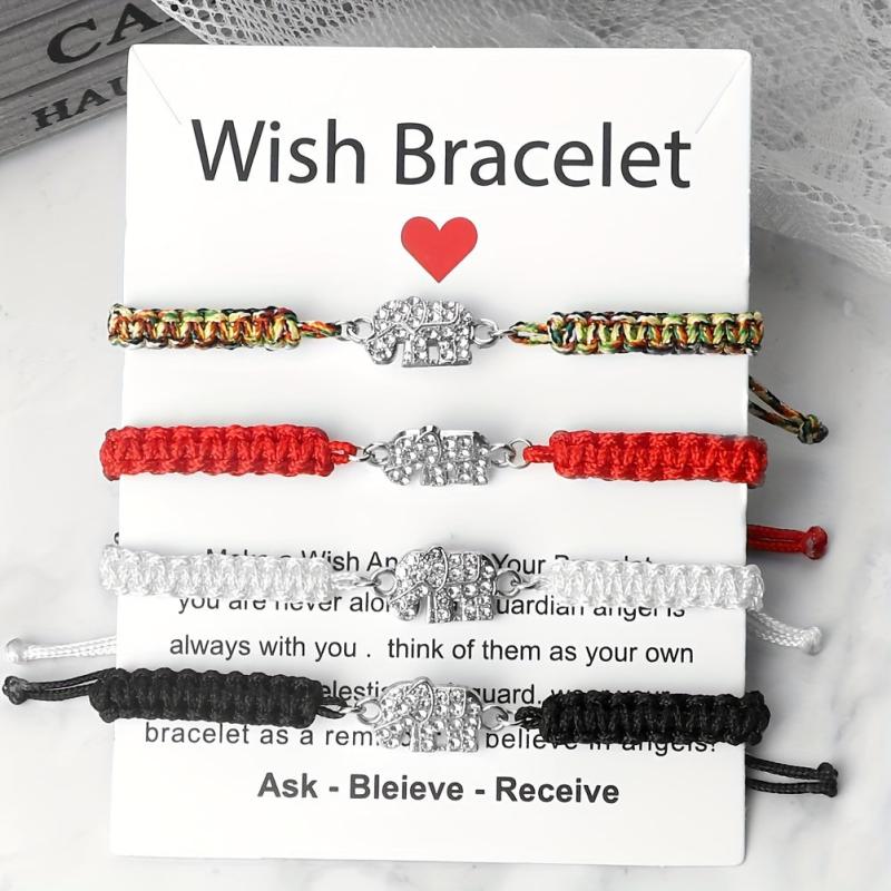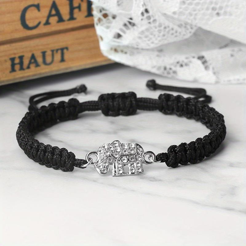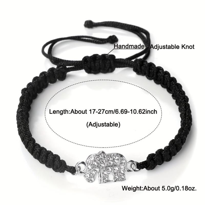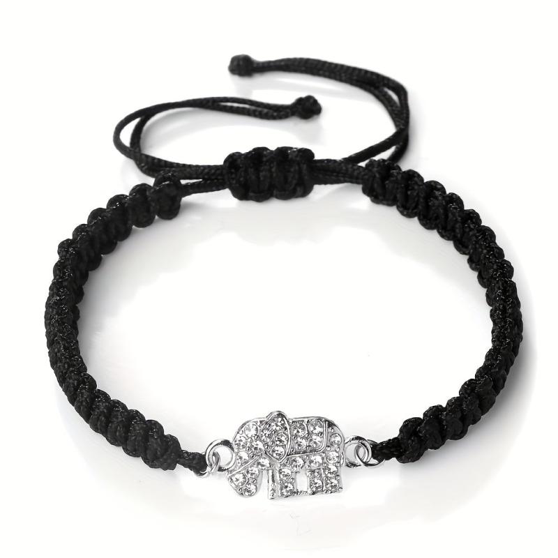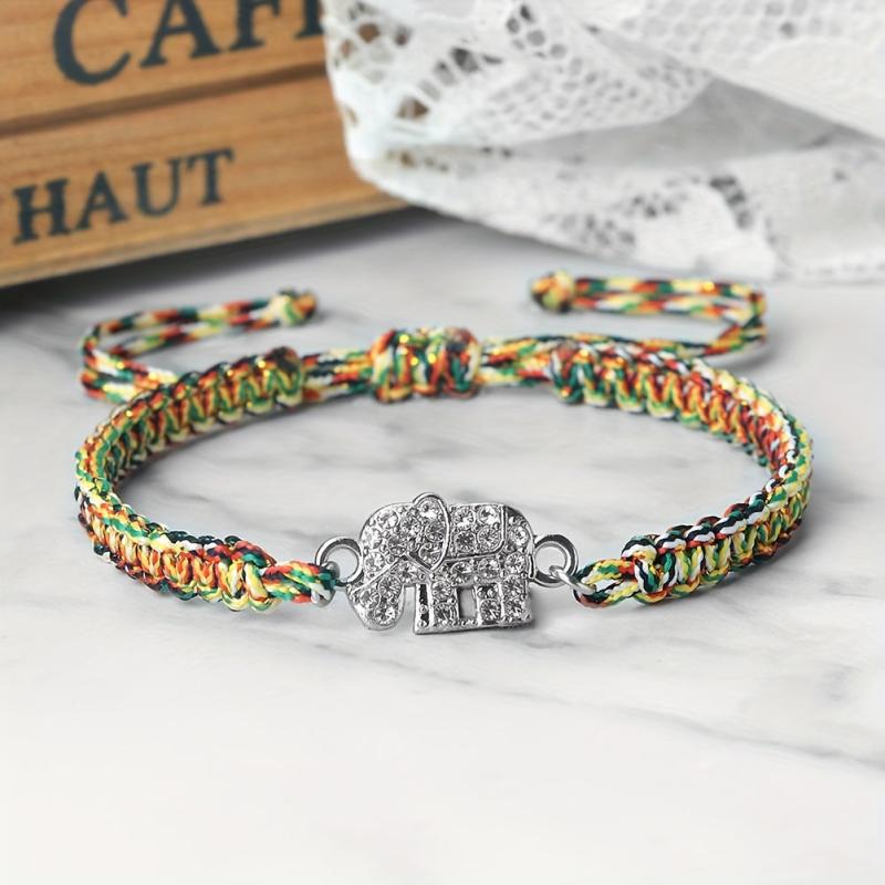 This Elephant Bracelet with Nylon Thread is a stylish accessory suitable for both men and women. It features a hand-woven rope design and an adjustable size for a comfortable fit.