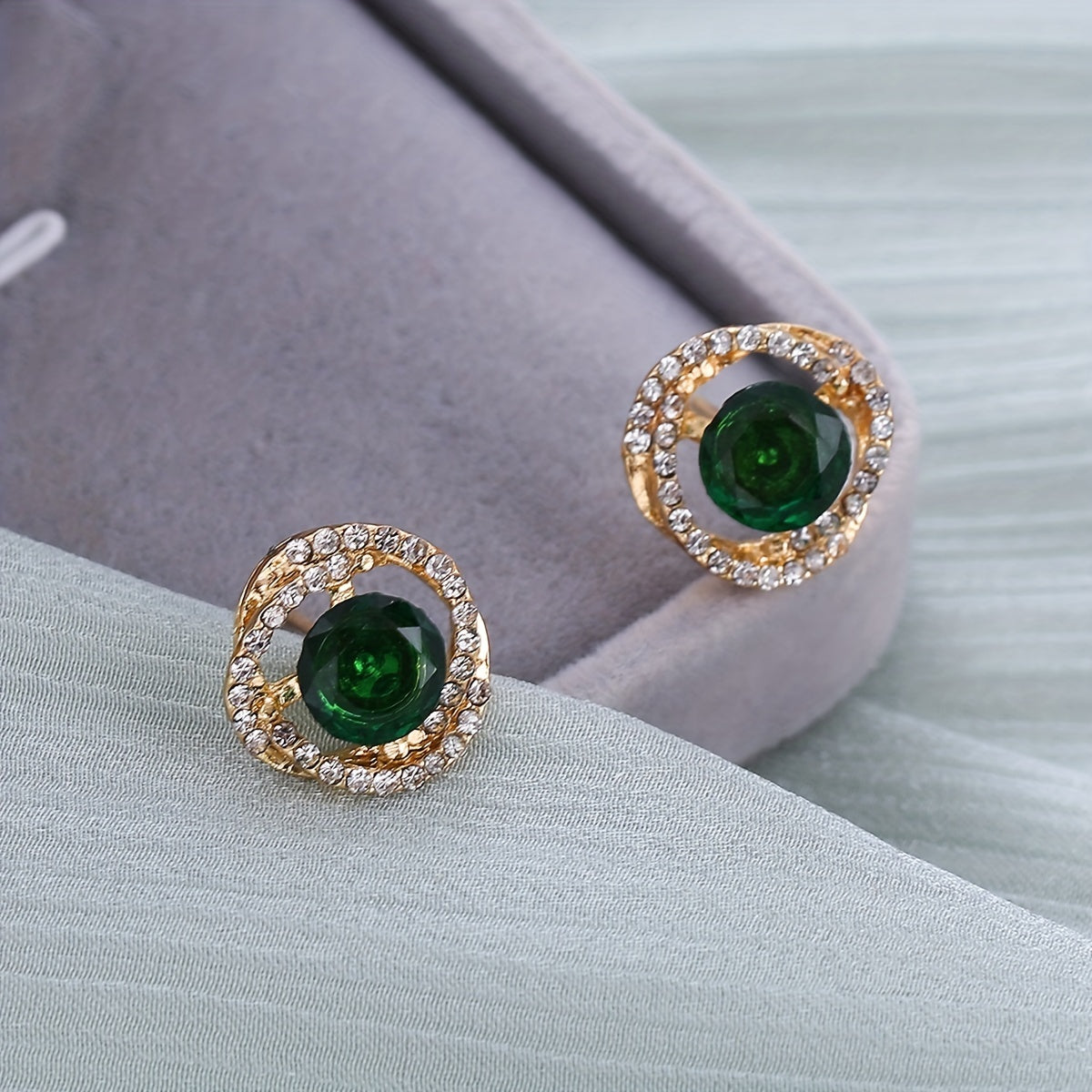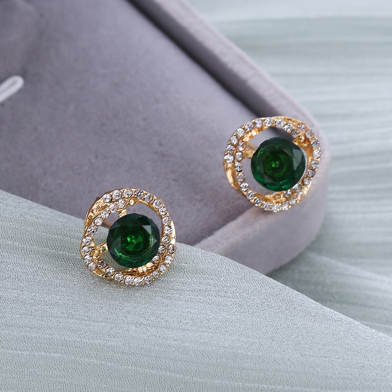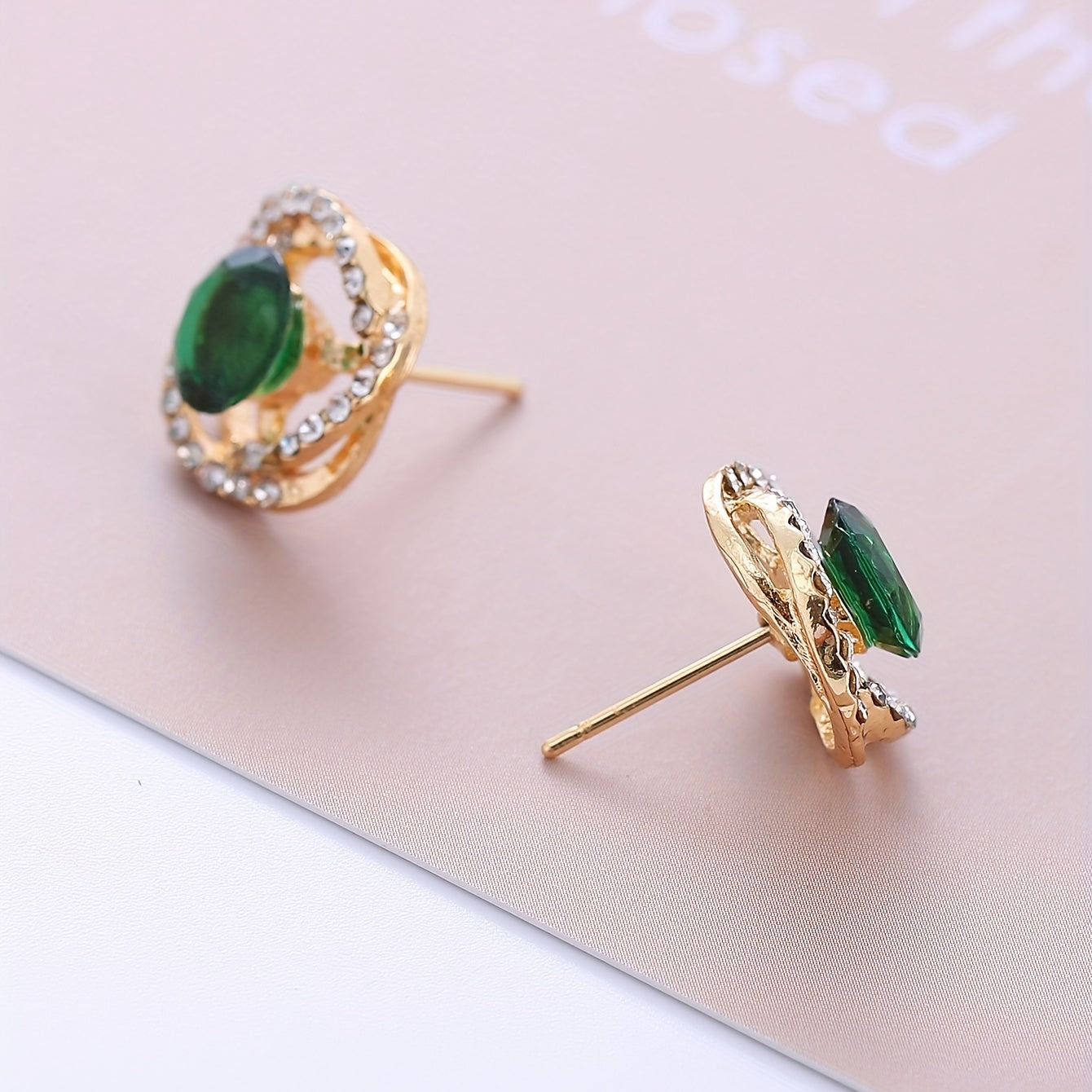 These emerald artificial crystal stud earrings feature a retro style design made of zinc alloy with 18K gold plating. Delicate and elegant, these earrings make a perfect gift for women.