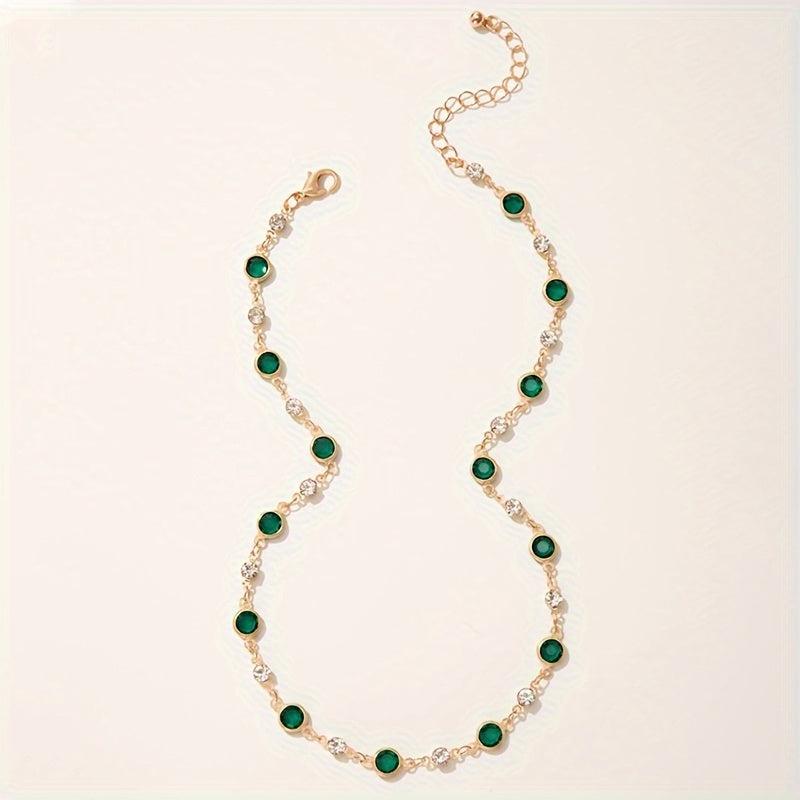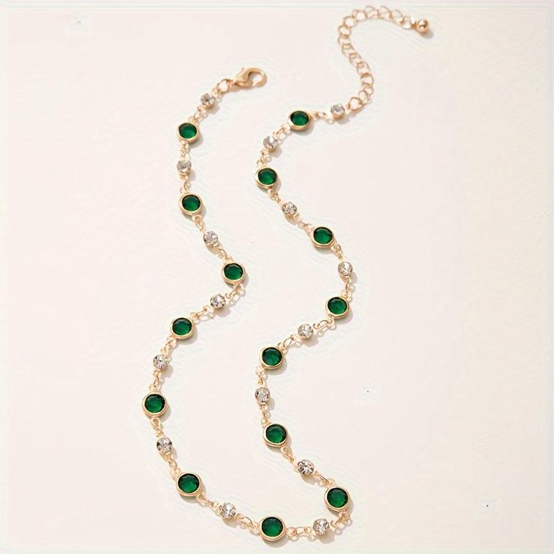 Add a touch of elegance with this stunning emerald green crystal pendant necklace featuring golden chain and sparkling accents. Perfect for any occasion.