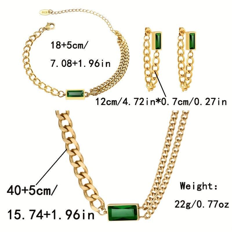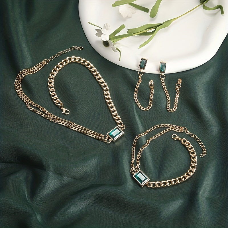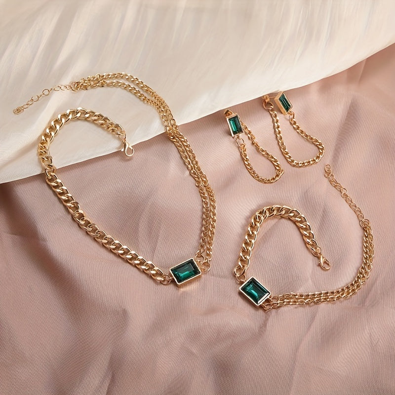 Elegant jewelry set featuring inlaid emerald zircon, perfect for evening cocktail parties. Ideal gift for birthdays and Christmas.