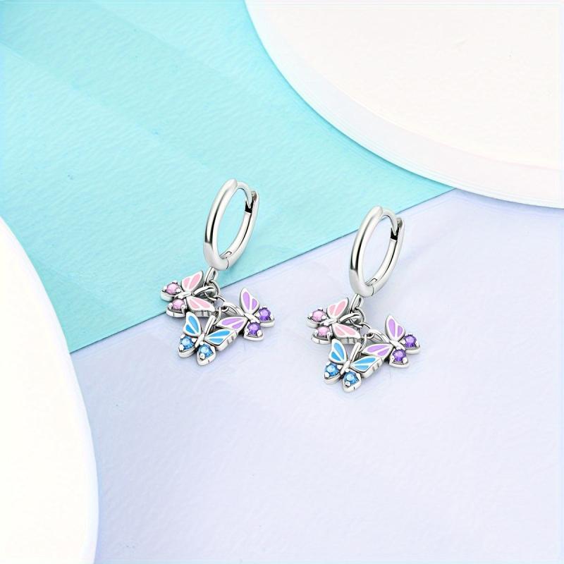 These beautiful butterfly dangle earrings are the perfect spring accessory. Featuring silvery plated copper and synthetic zirconia, they make a lovely gift for women.
