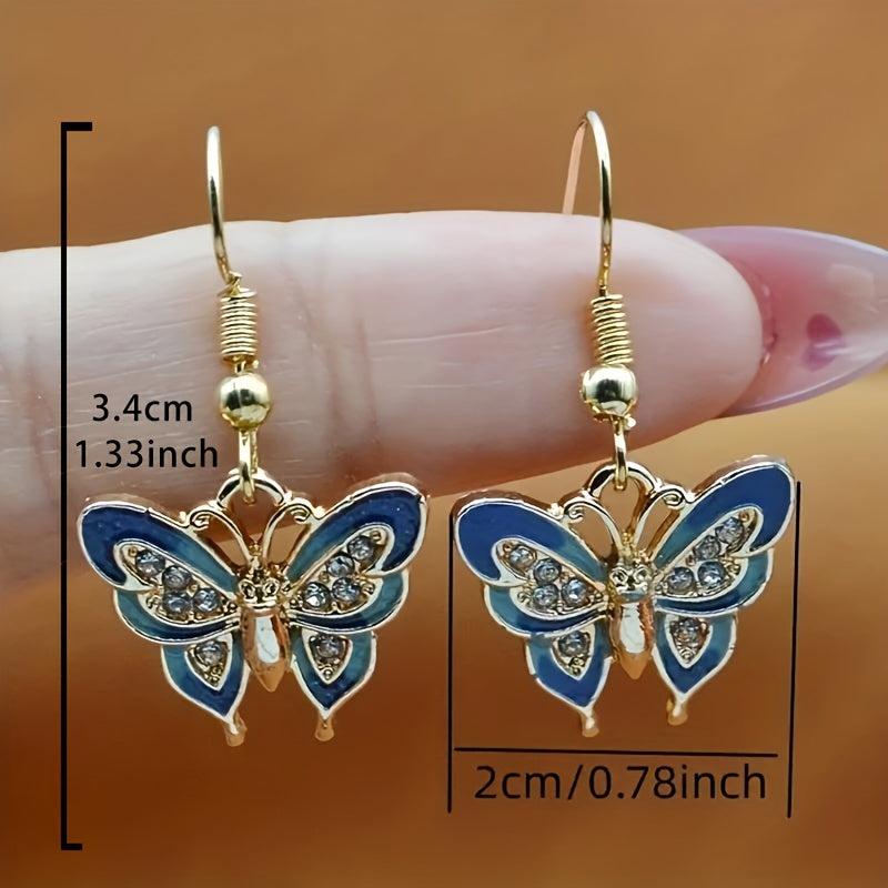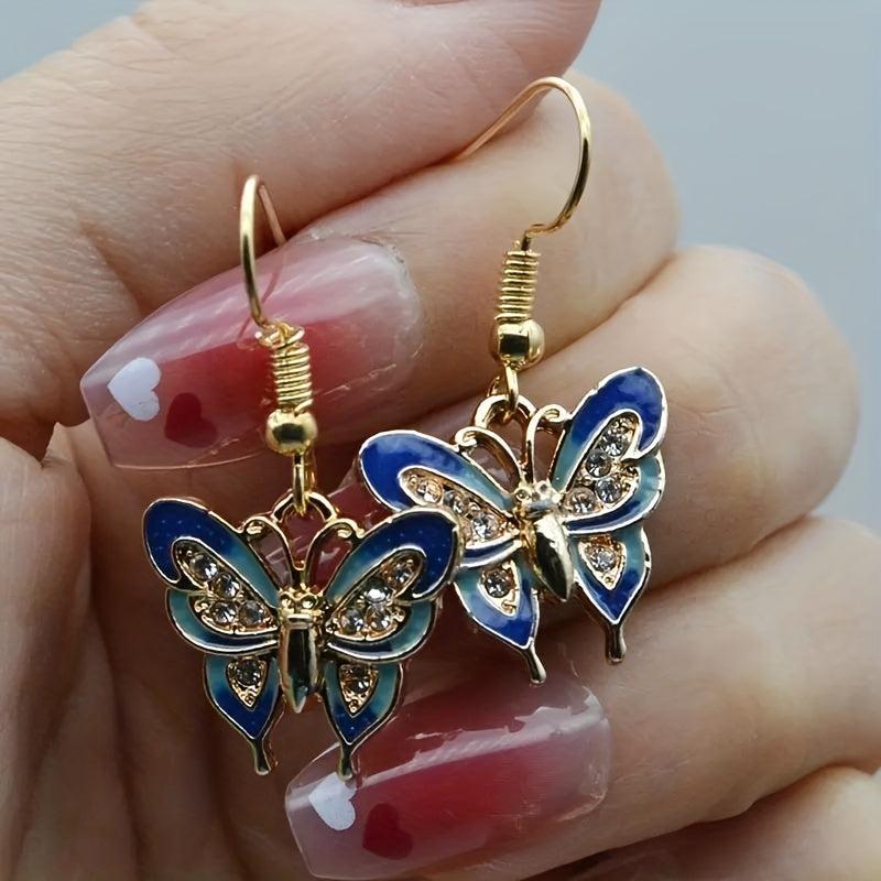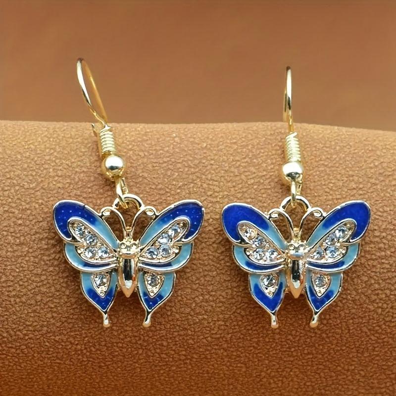 Add a touch of elegance and glamour to your look with these enamel butterfly dangle earrings featuring zirconia accents. Perfect for a night out or special occasion.