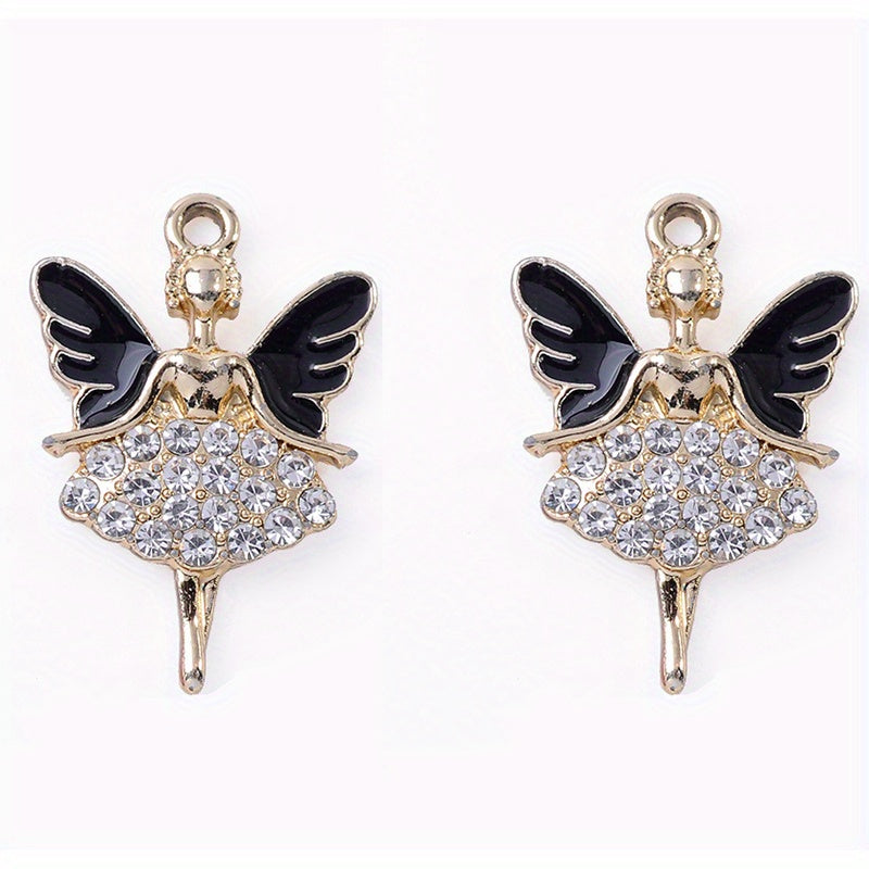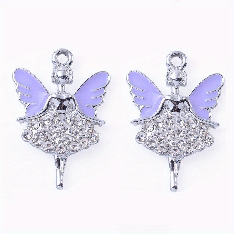Add a touch of elegance to your handmade jewelry pieces with this rhinestone decorated angle and butterfly enamel pendant. Perfect for earrings, bracelets, necklaces, and more.