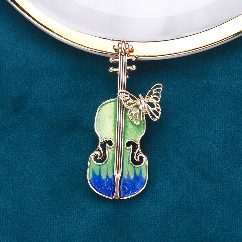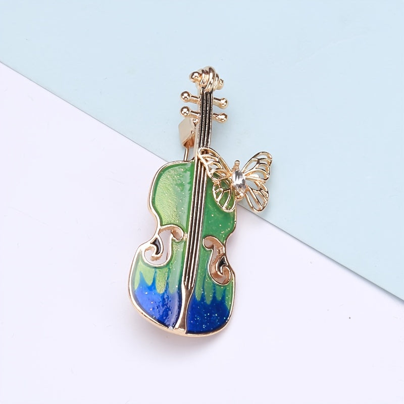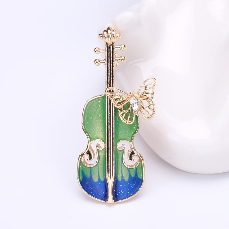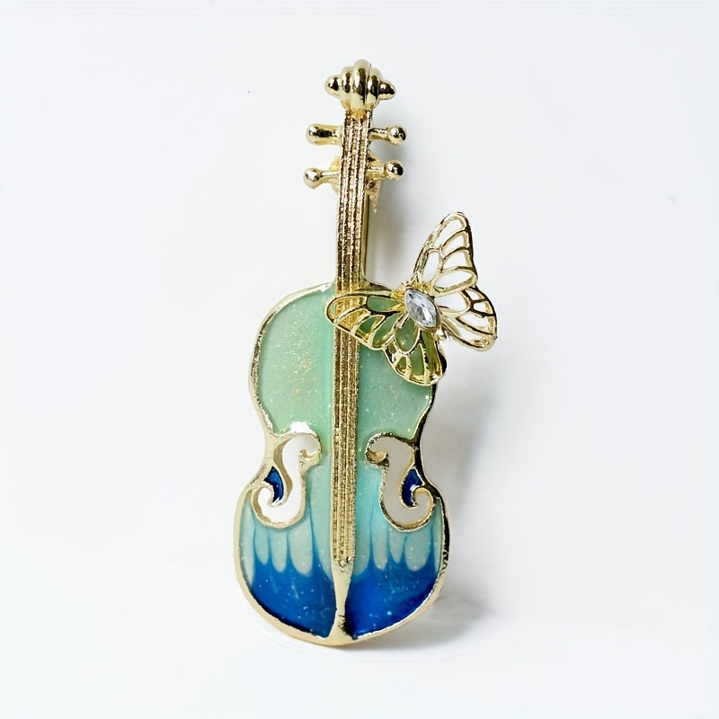 This enamel butterfly violin brooch pin is a beautiful accessory for women and girls to decorate their clothing. It adds a touch of elegance and charm to any outfit.