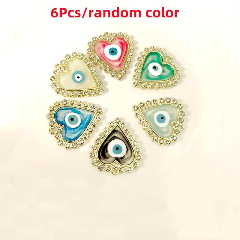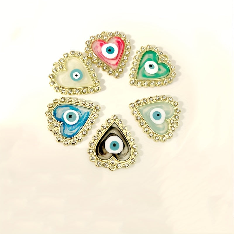 Get these random enamel style evil eye heart shape pendants for your DIY earrings, bracelet, or necklace projects. Add a unique touch to your jewelry creations.