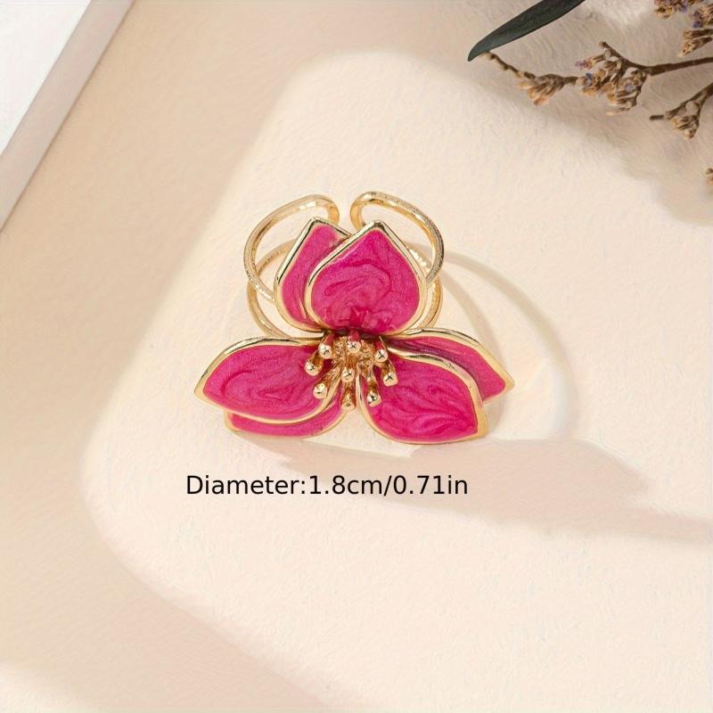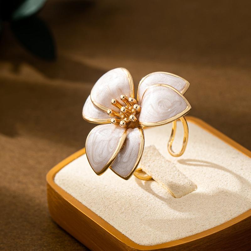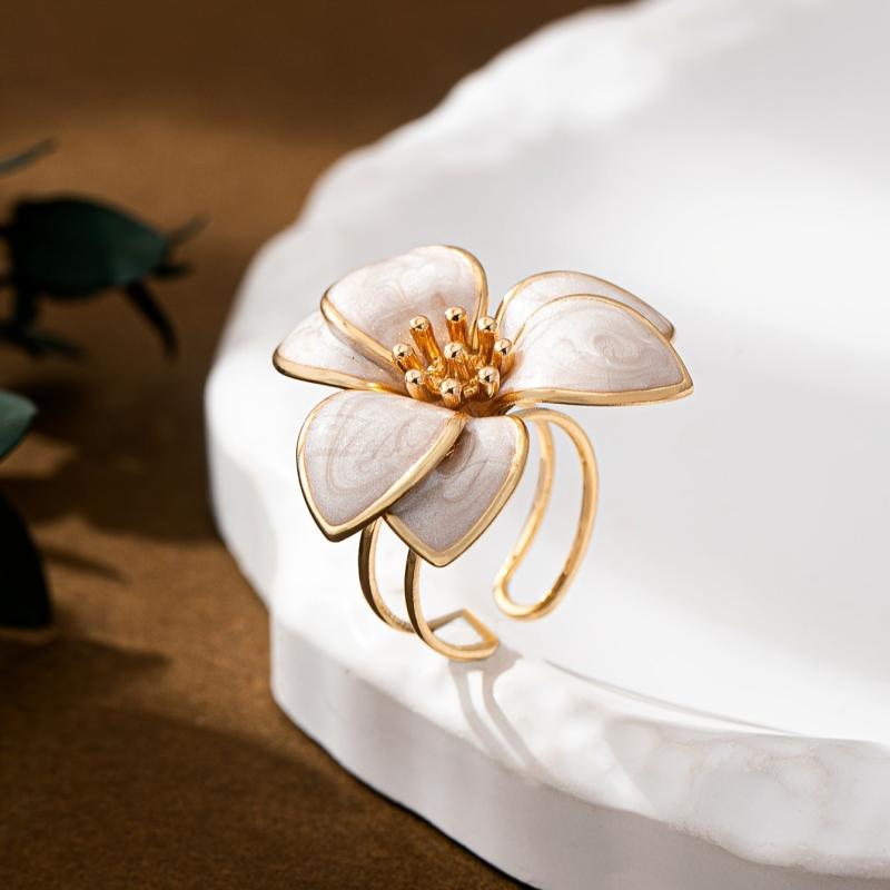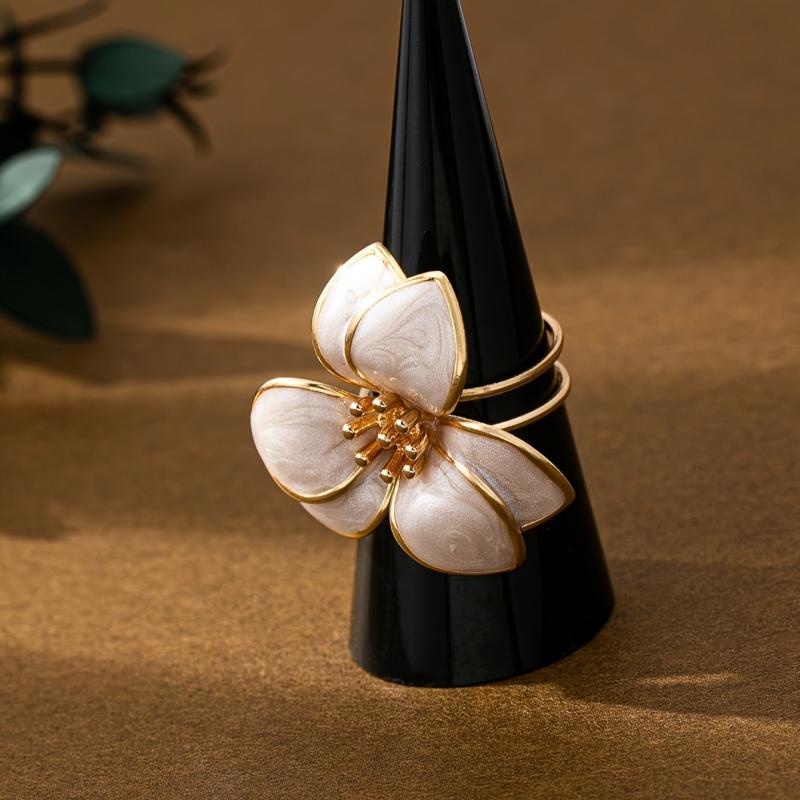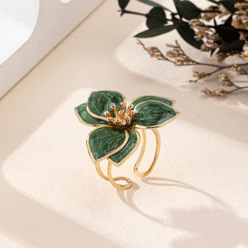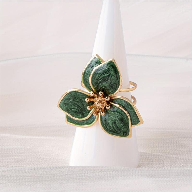 This stylish enamel flower ring features green marble set in golden tone metal. Perfect for daily wear or party accessorizing.
