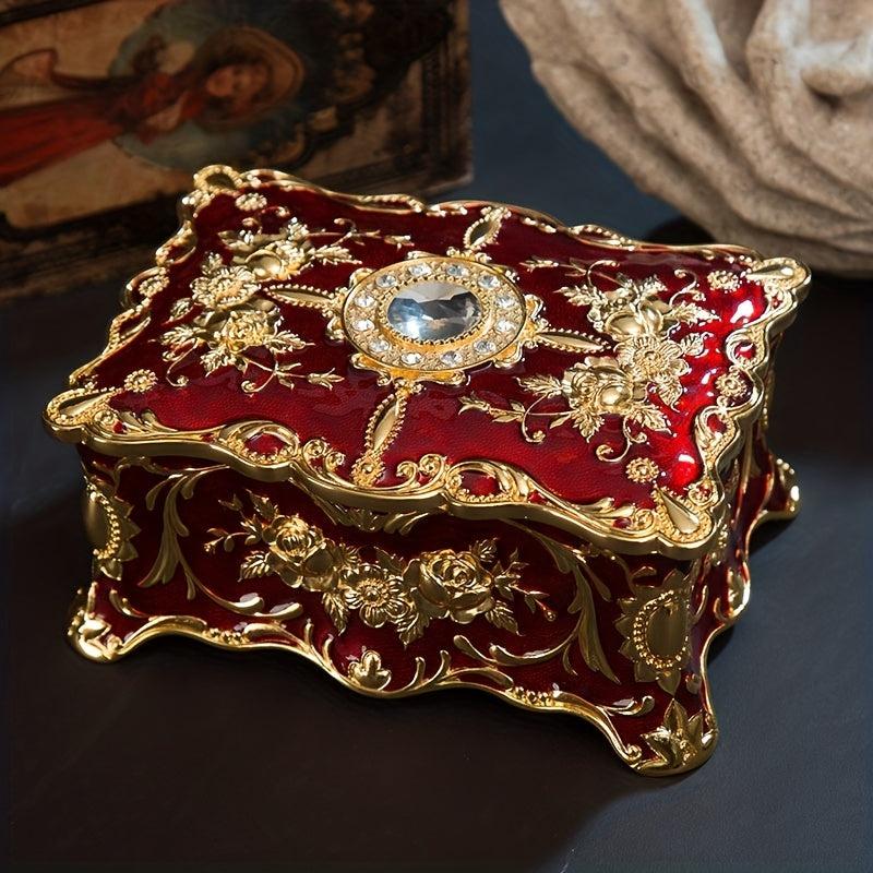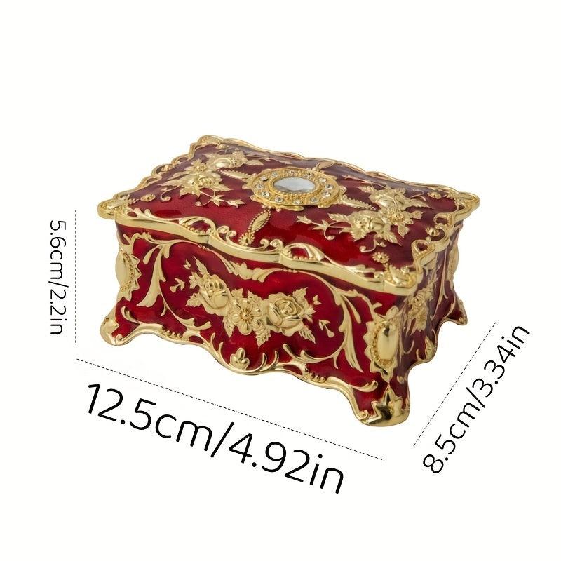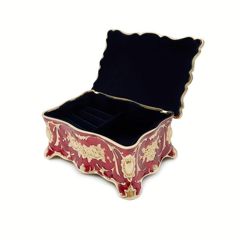 This high-end jewelry box features enamel inlay and a retro flip cover design. Perfect for storing your precious jewelry items in style.