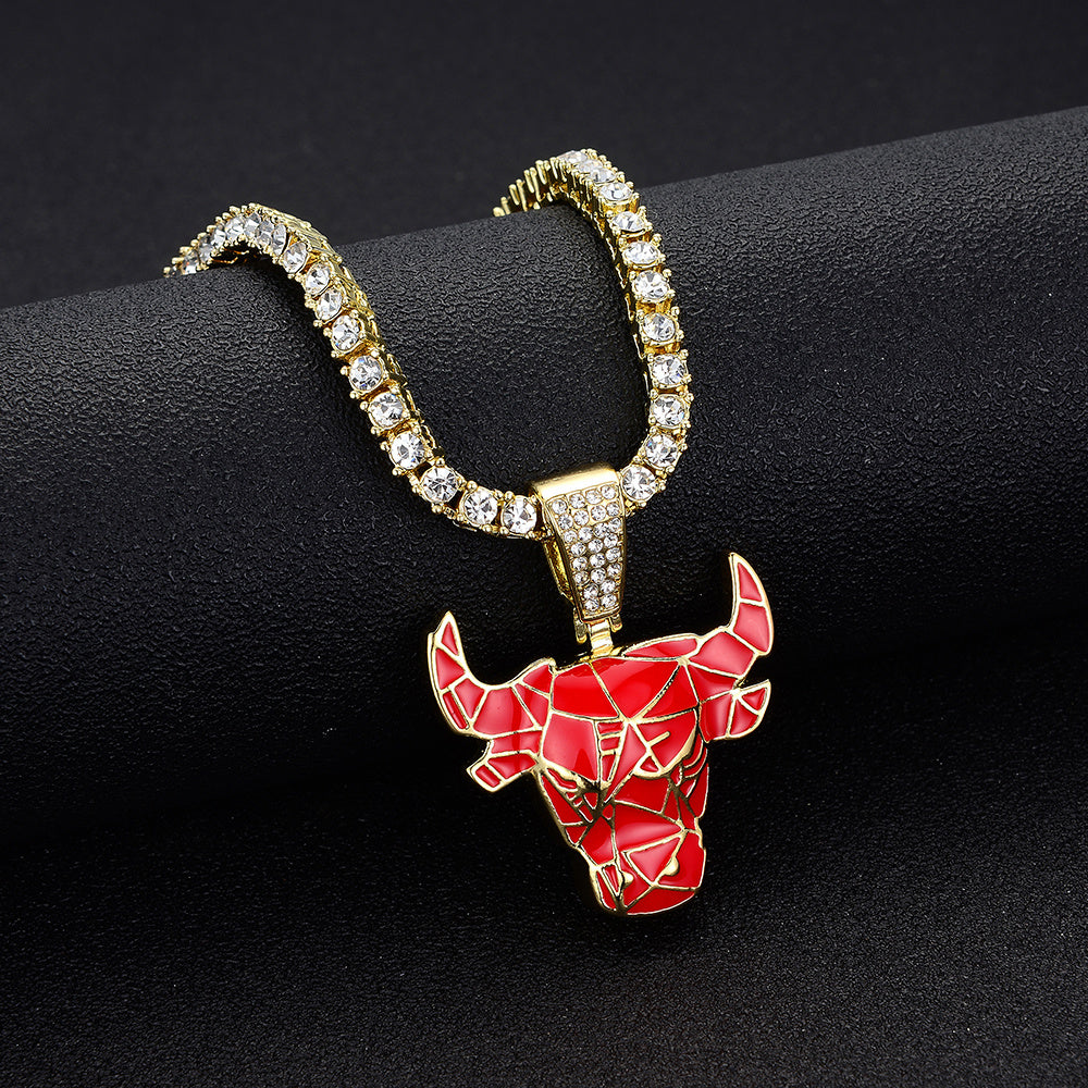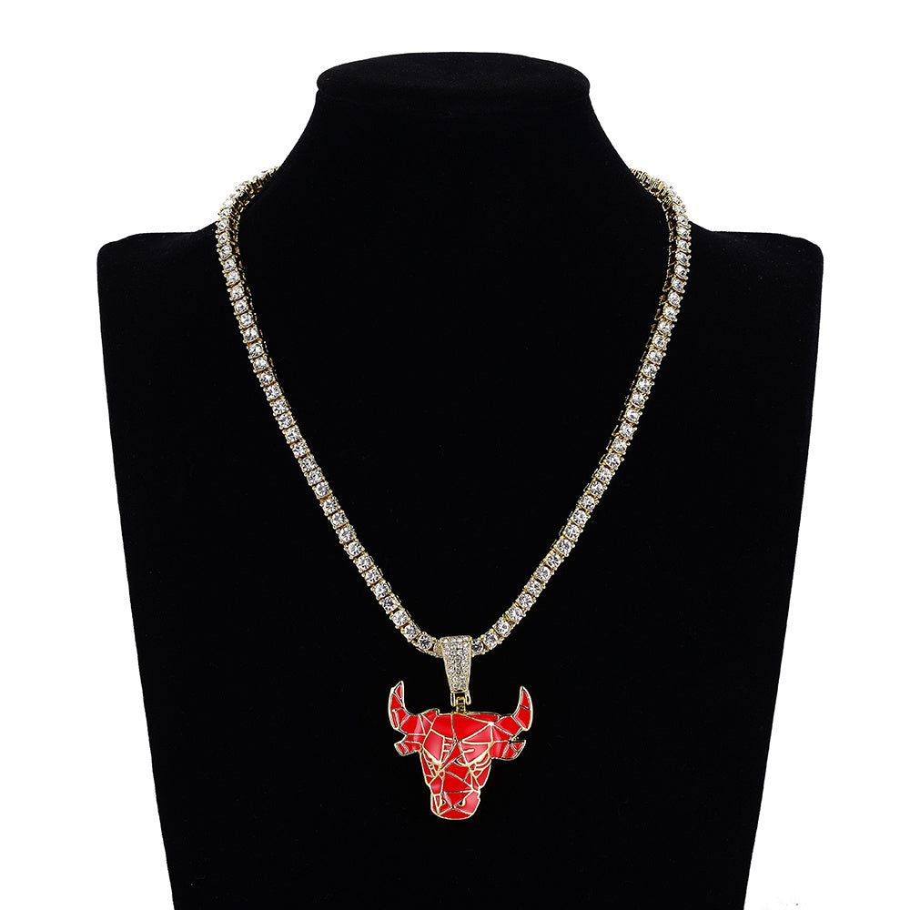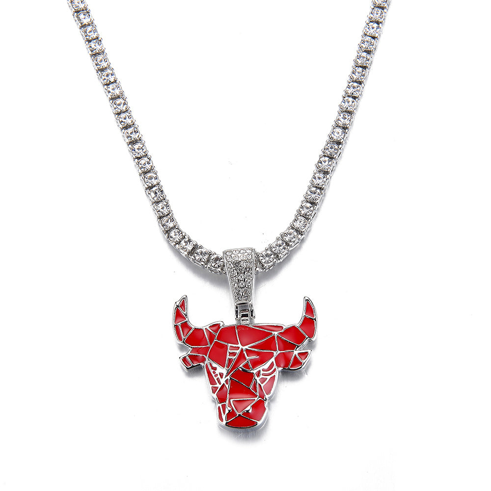 Stylish Red Bull pendant necklace with enamel finish on a trendy tennis chain.