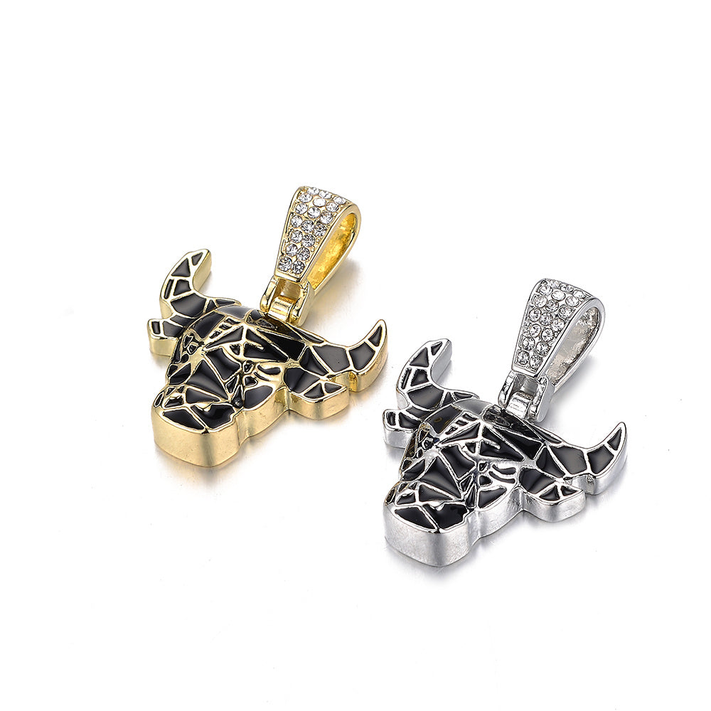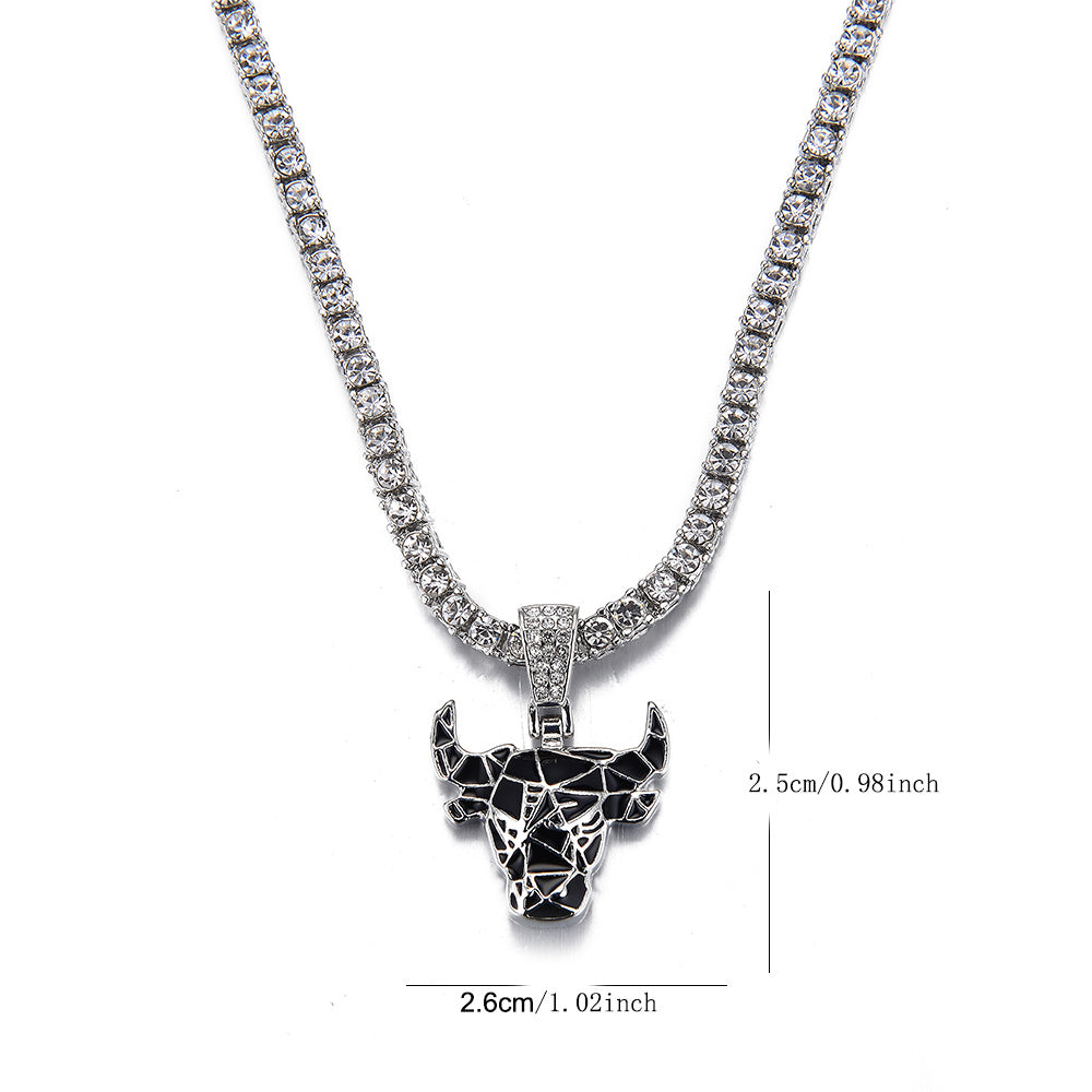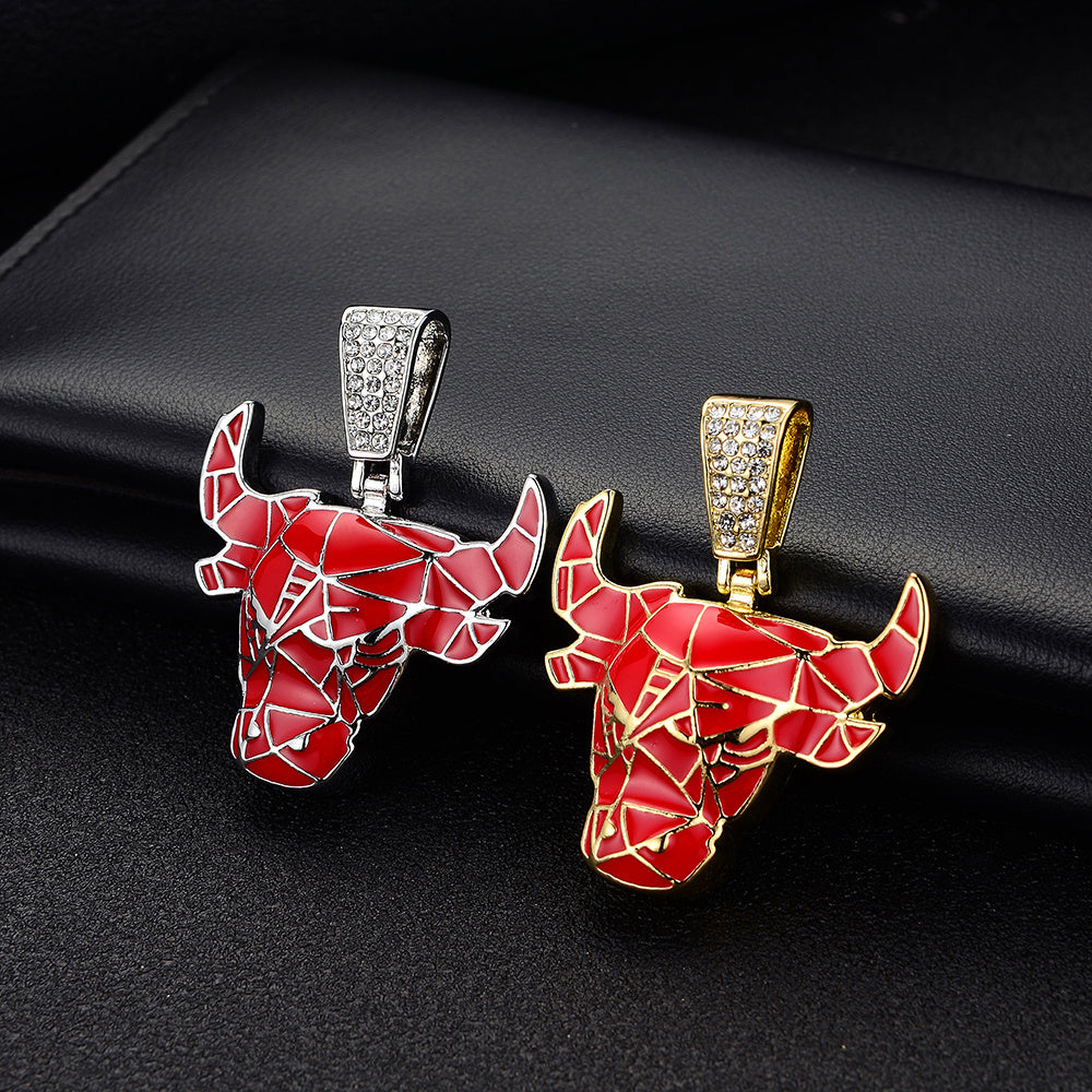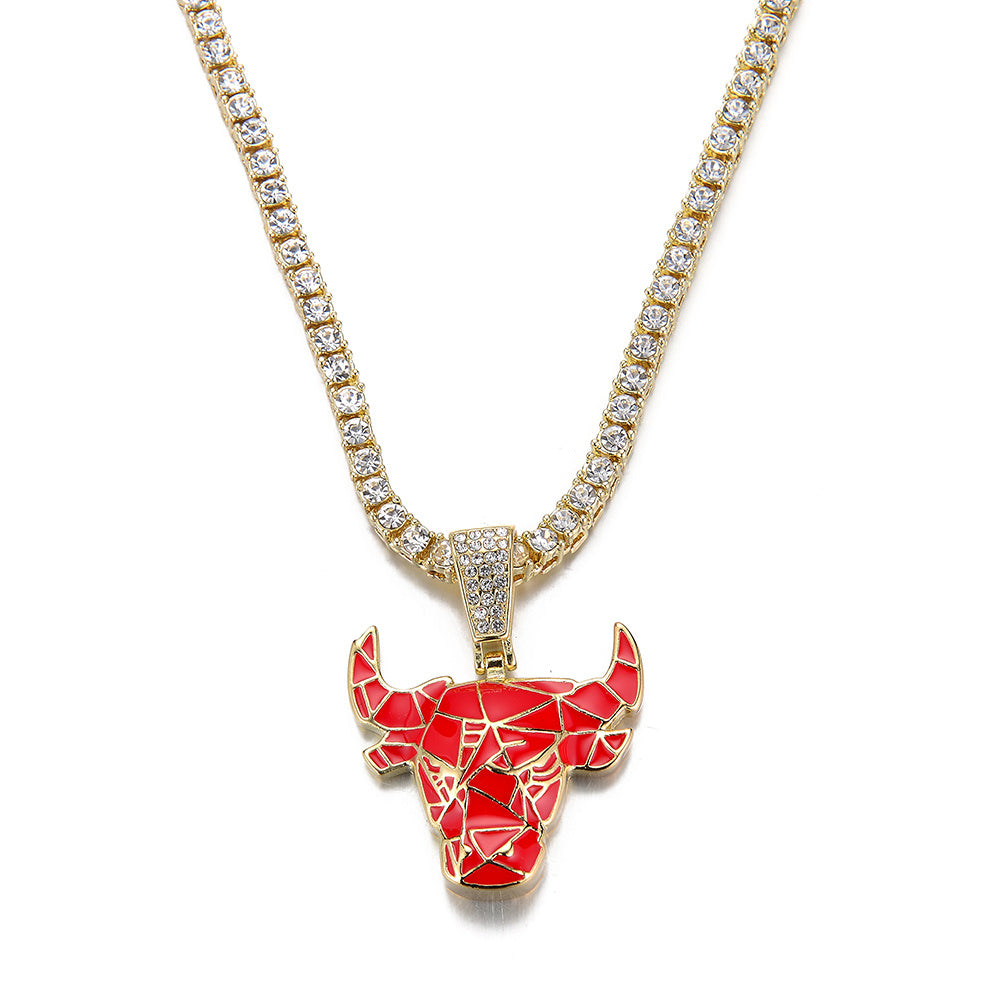 Stylish Red Bull pendant necklace with enamel finish on a trendy tennis chain.