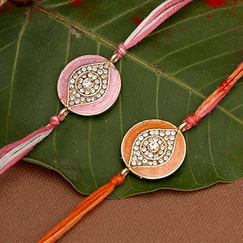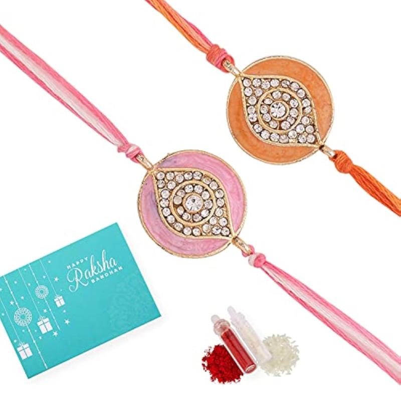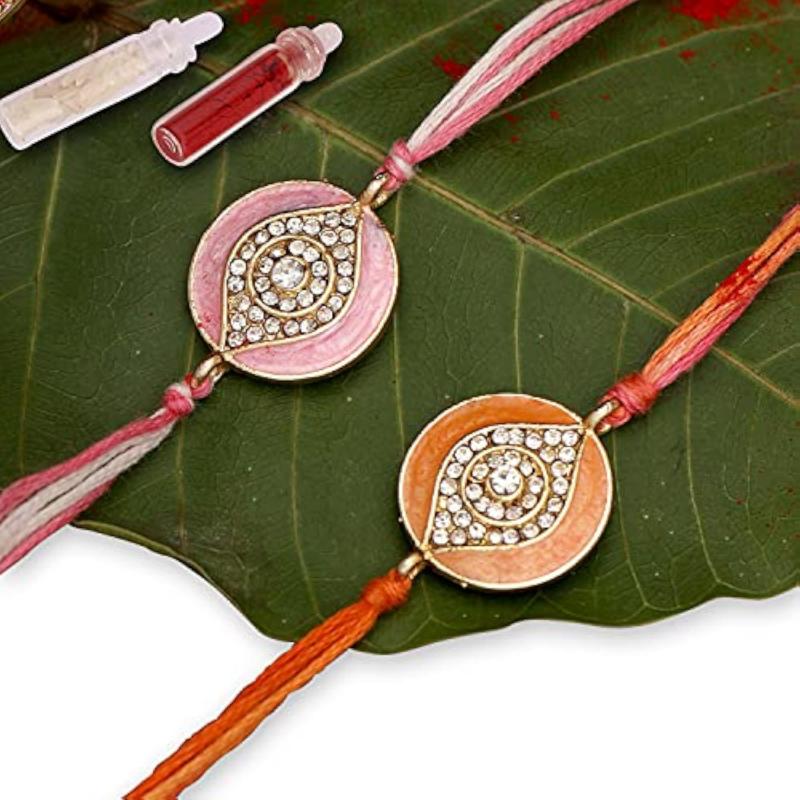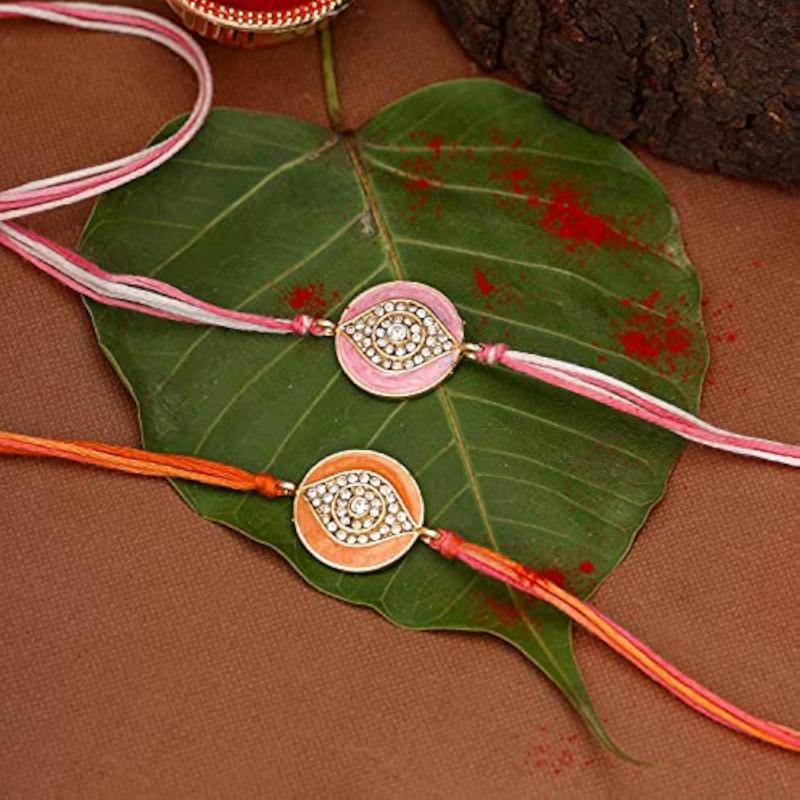 Celebrate Raksha Bandhan with this beautifully crafted enameled Rakhi combo set that includes Roli Chaawal pack. Perfect gift for your sibling!
