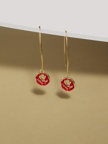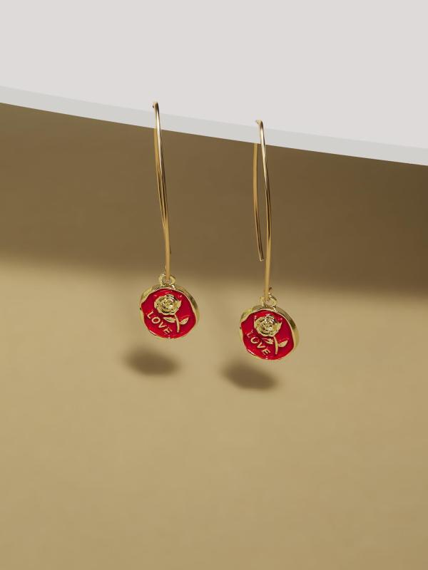 Add a touch of romance with these contemporary drop earrings featuring enamelled rose design. Perfect for any outfit and occasion.