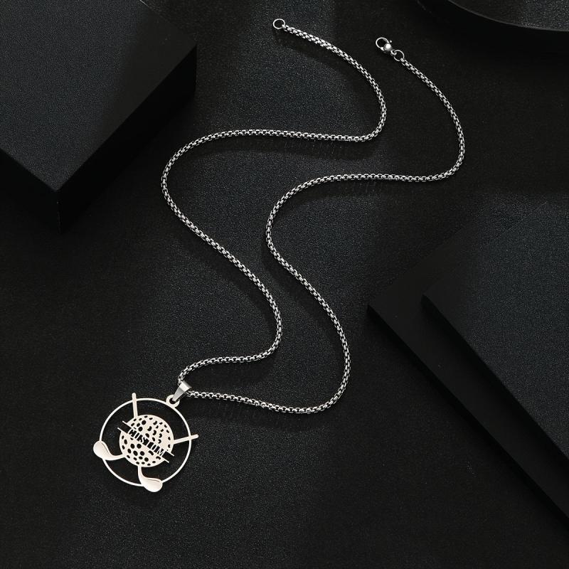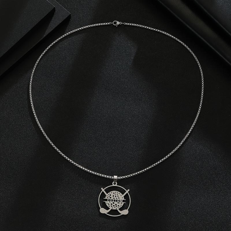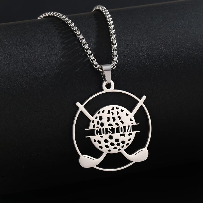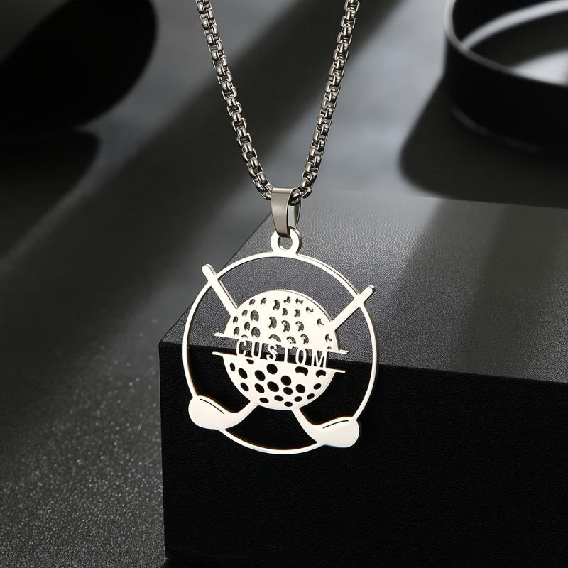 Engraved Golf Pendant Necklace - Personalized Stainless Steel Sport Jewelry