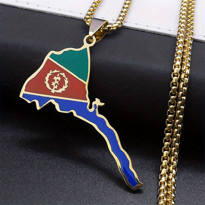 This stylish Eritrea map flag pendant necklace is a perfect accessory to showcase your heritage. It's a great Christmas or birthday gift for men, women, or couples.