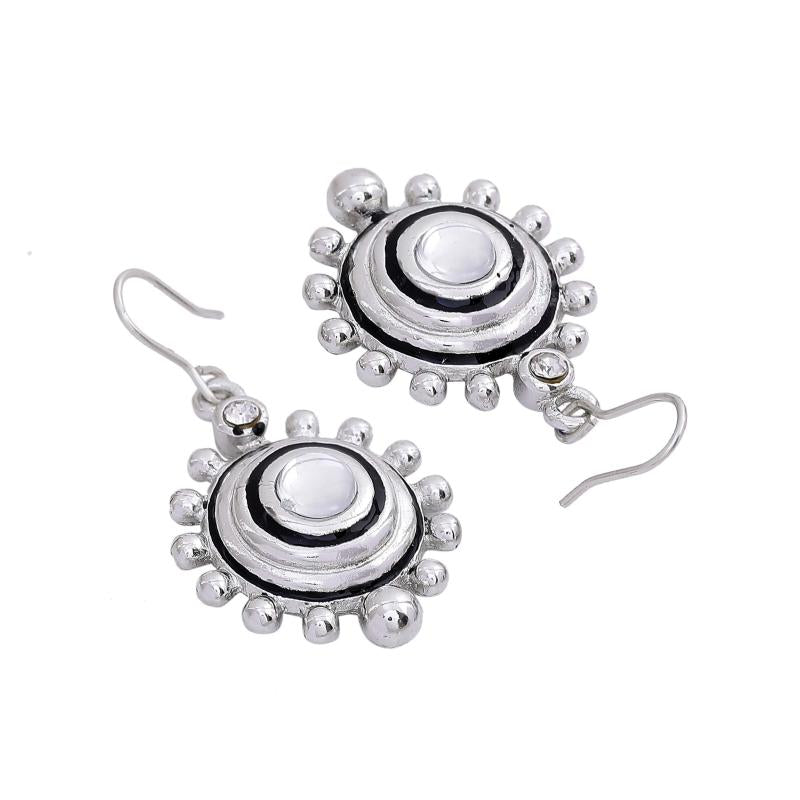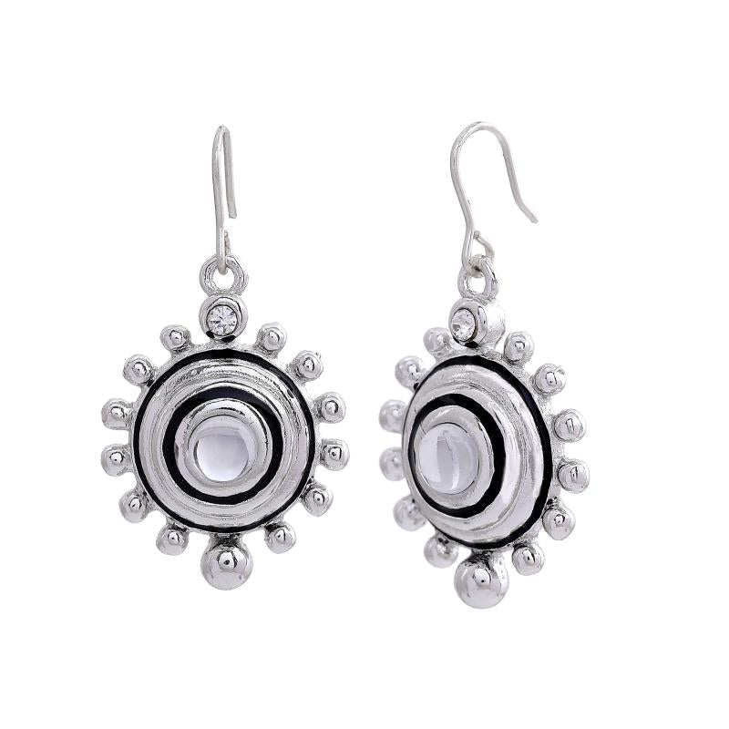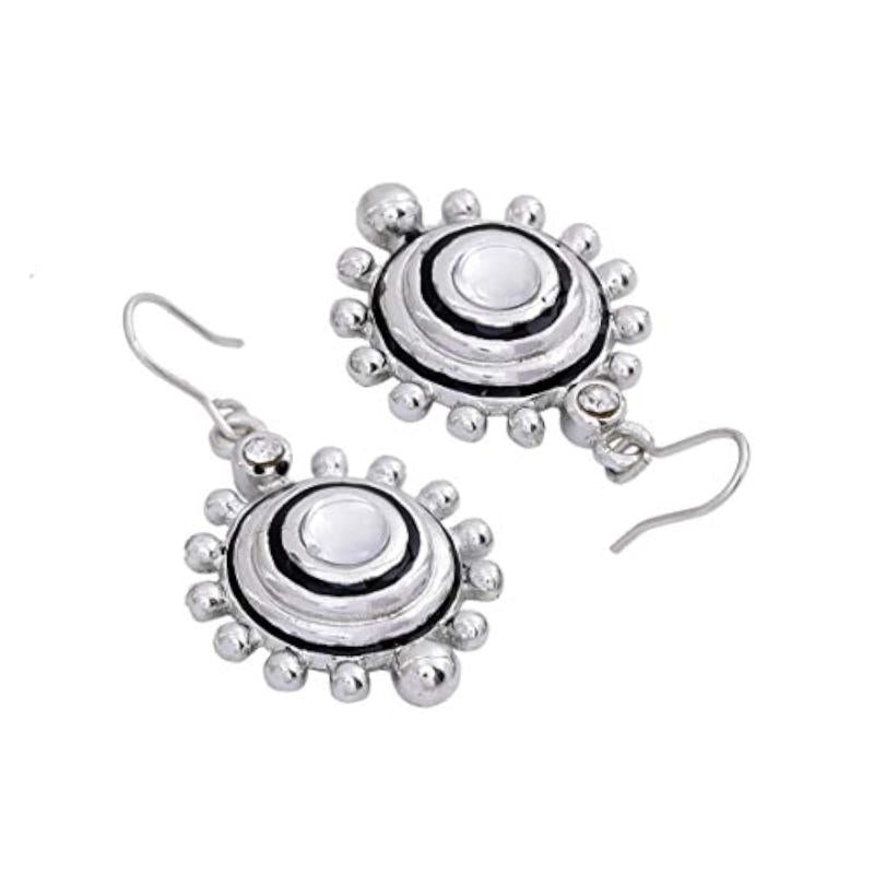These playful sunrise drop earrings are made of zinc alloy with a rhodium tone finish, adding a touch of elegance to your look.