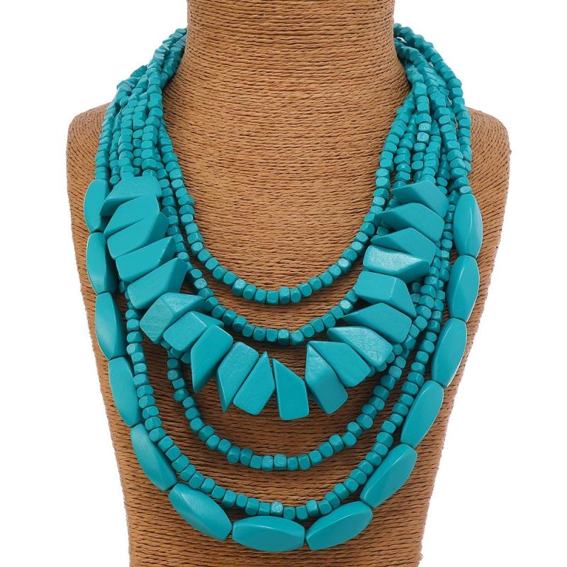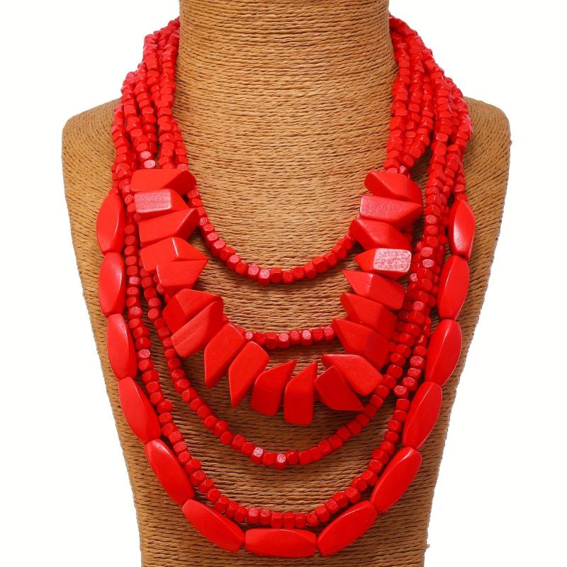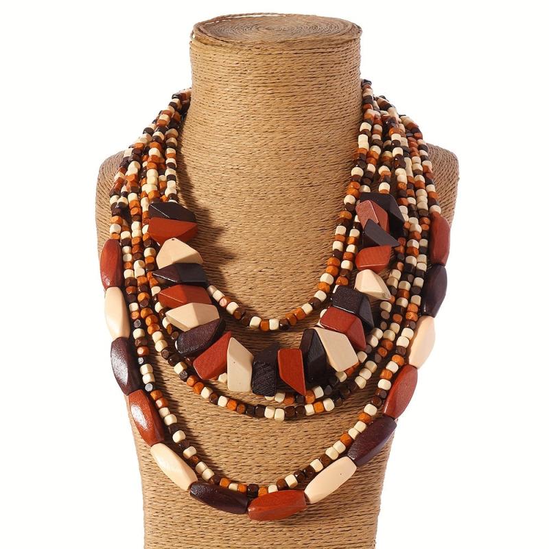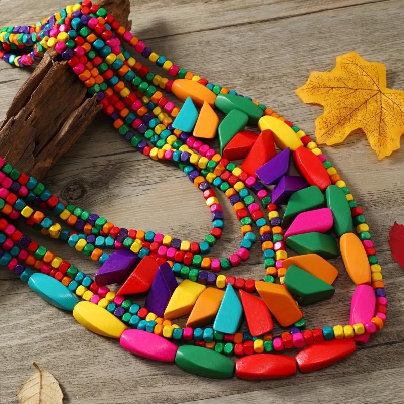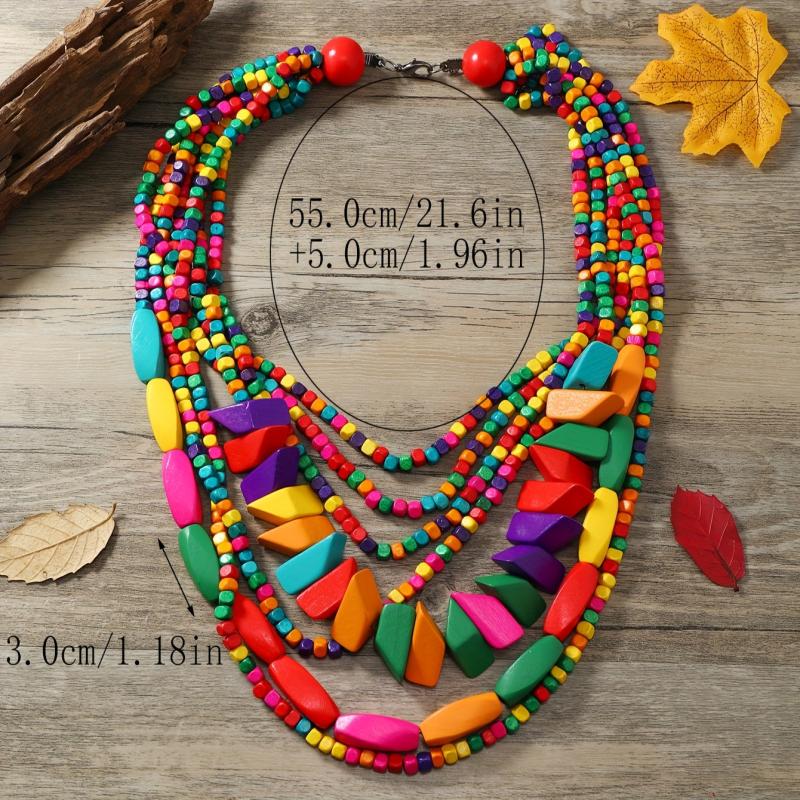 Elevate your look with this stunning sweater chain necklace featuring ethnic style beads and an exaggerated design.