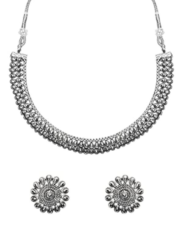 This stunning ethnic oxidised choker necklace set comes with matching earrings for a complete look.