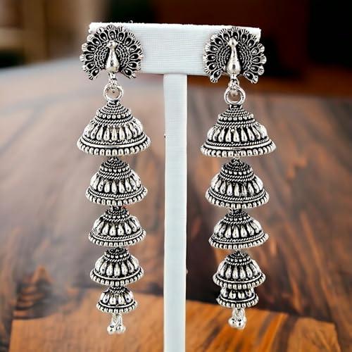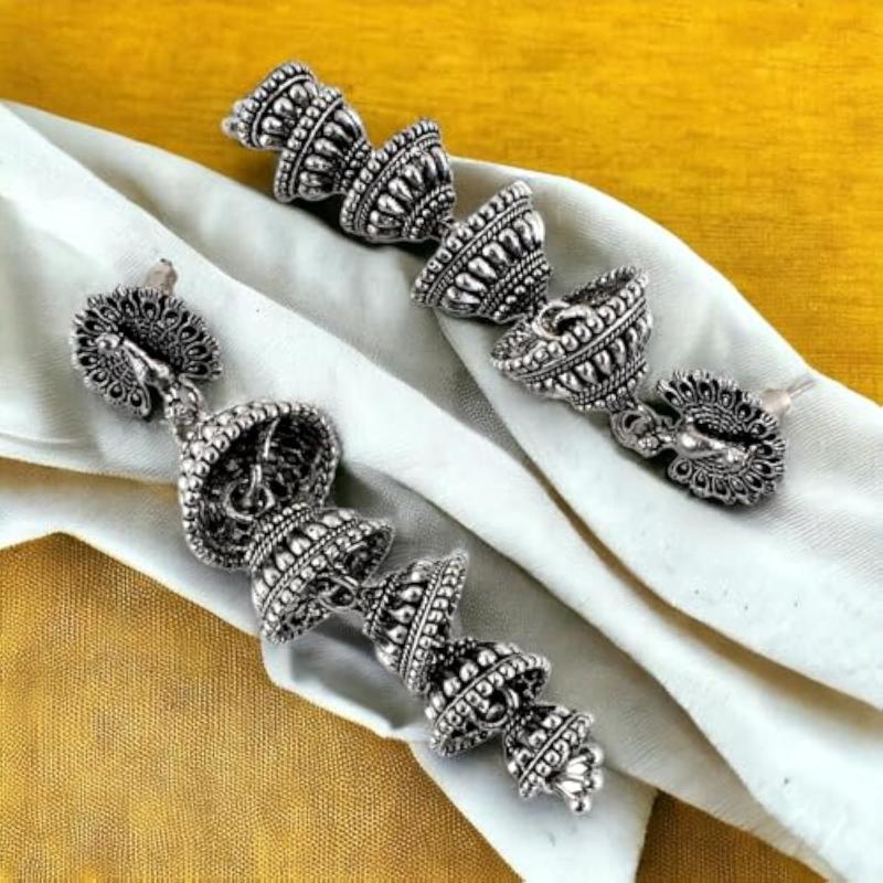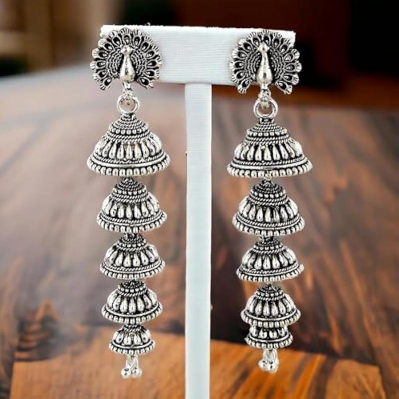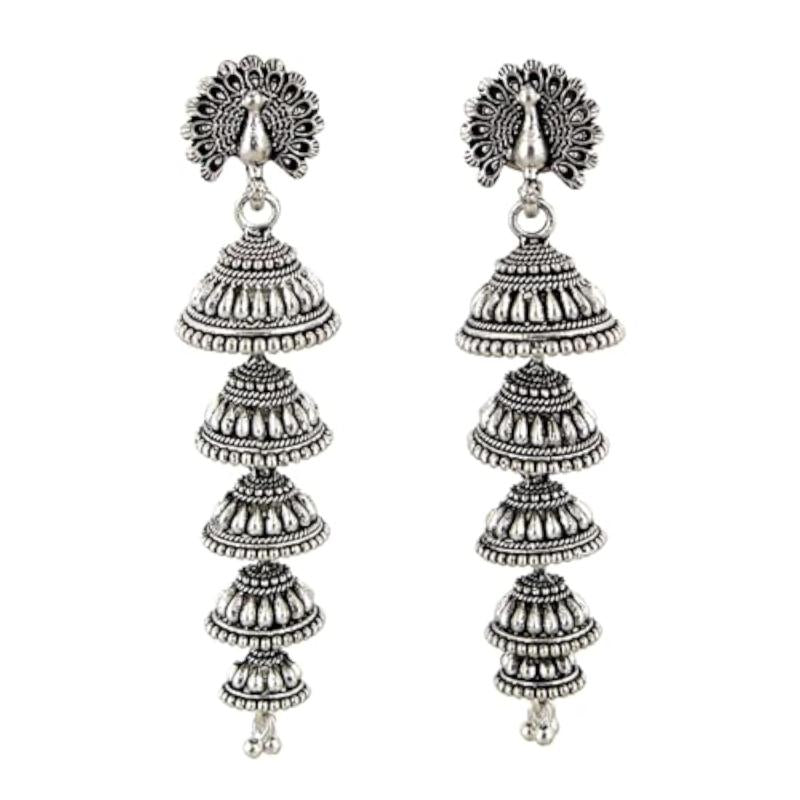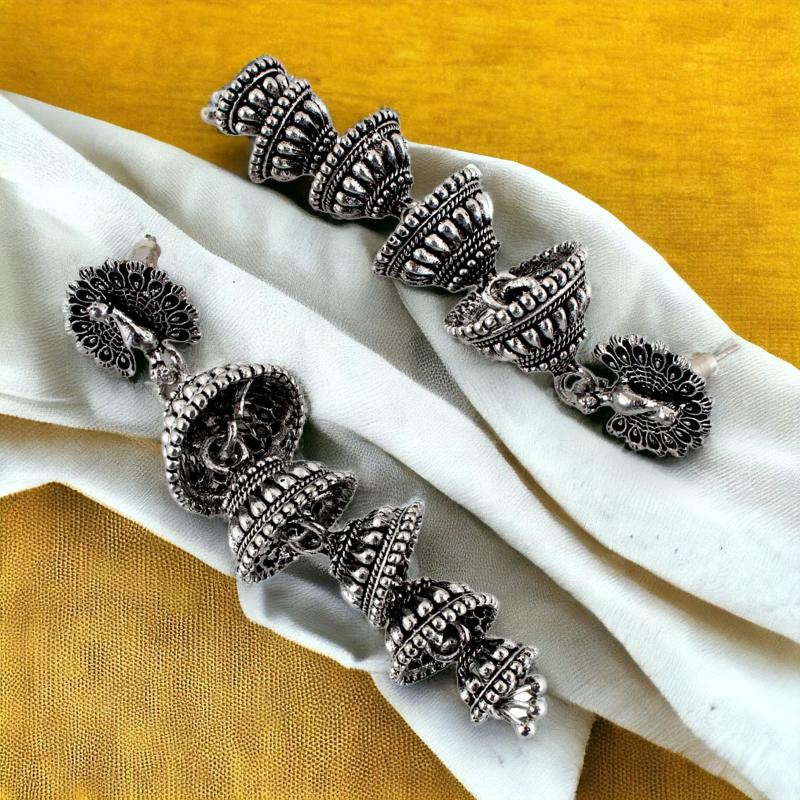 Enhance your ethnic look with these traditional jhumki earrings. Made of high-quality materials, these earrings feature an oxidised polish for a rustic, vintage look.