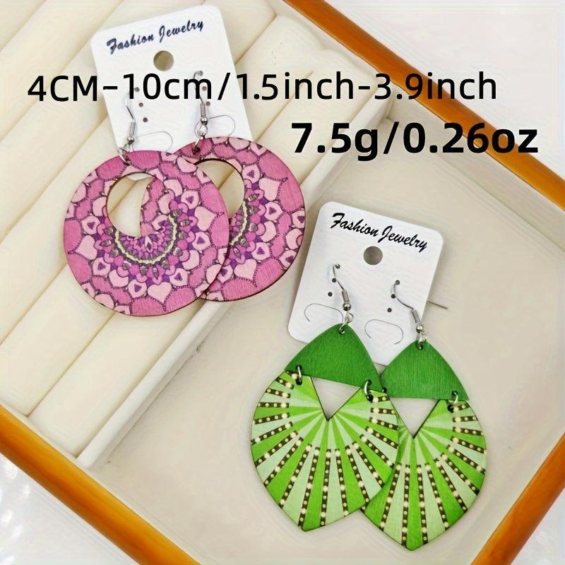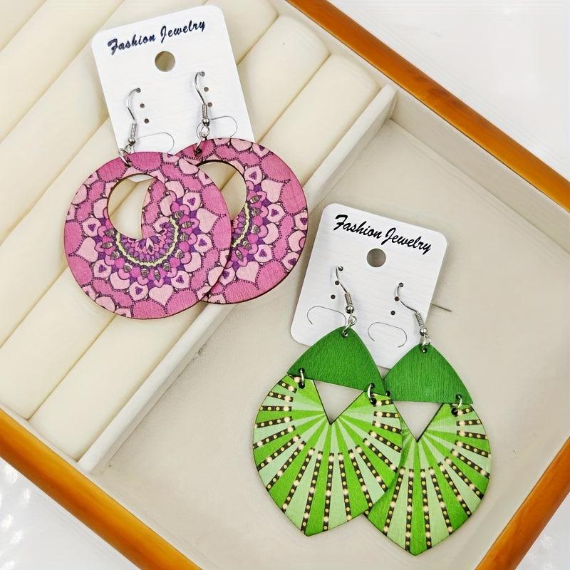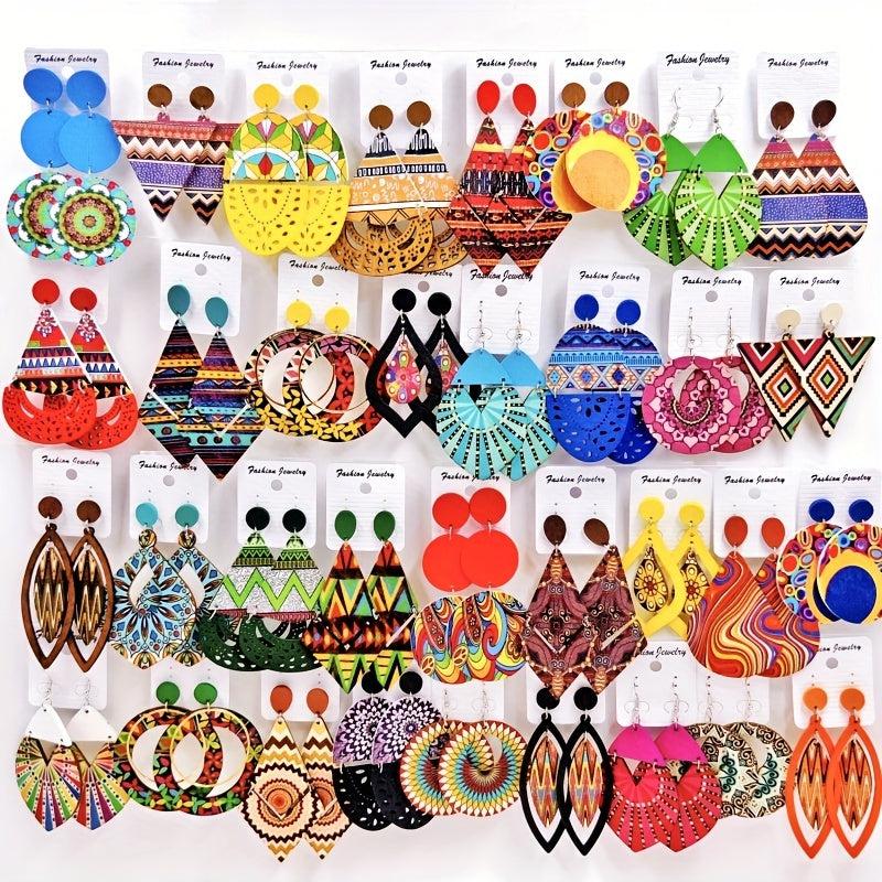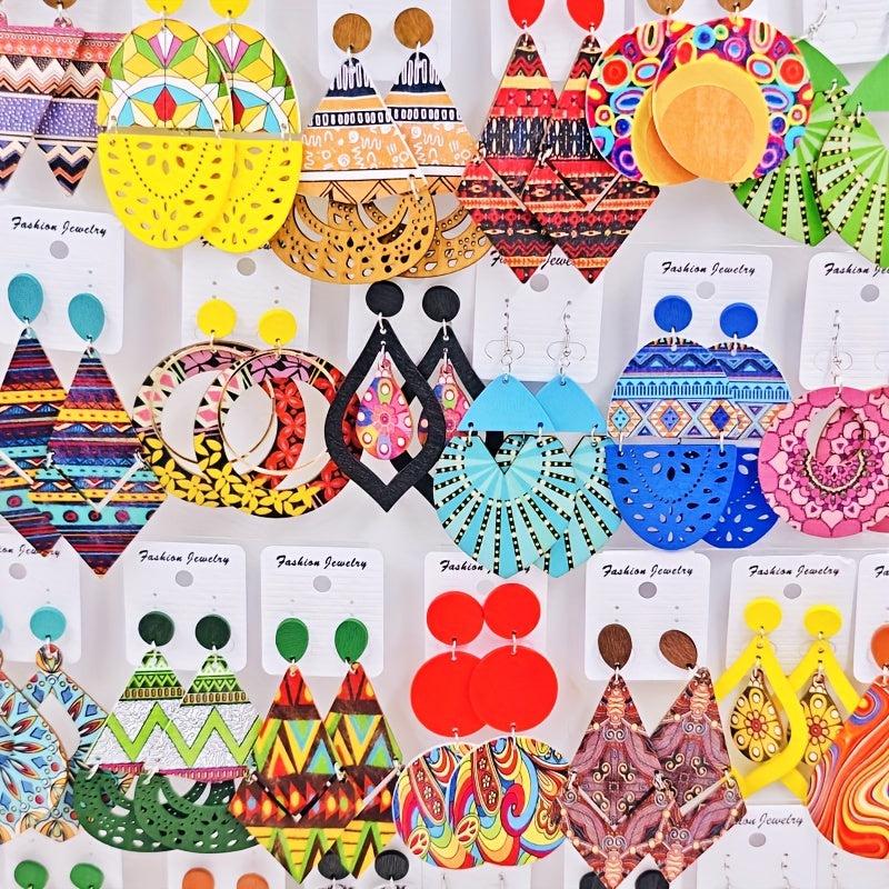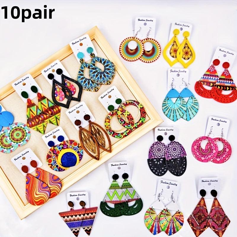 This lot includes 10 pairs of ethnic style wood earrings with a variety of styles. Perfect for women who love unique and natural accessories.