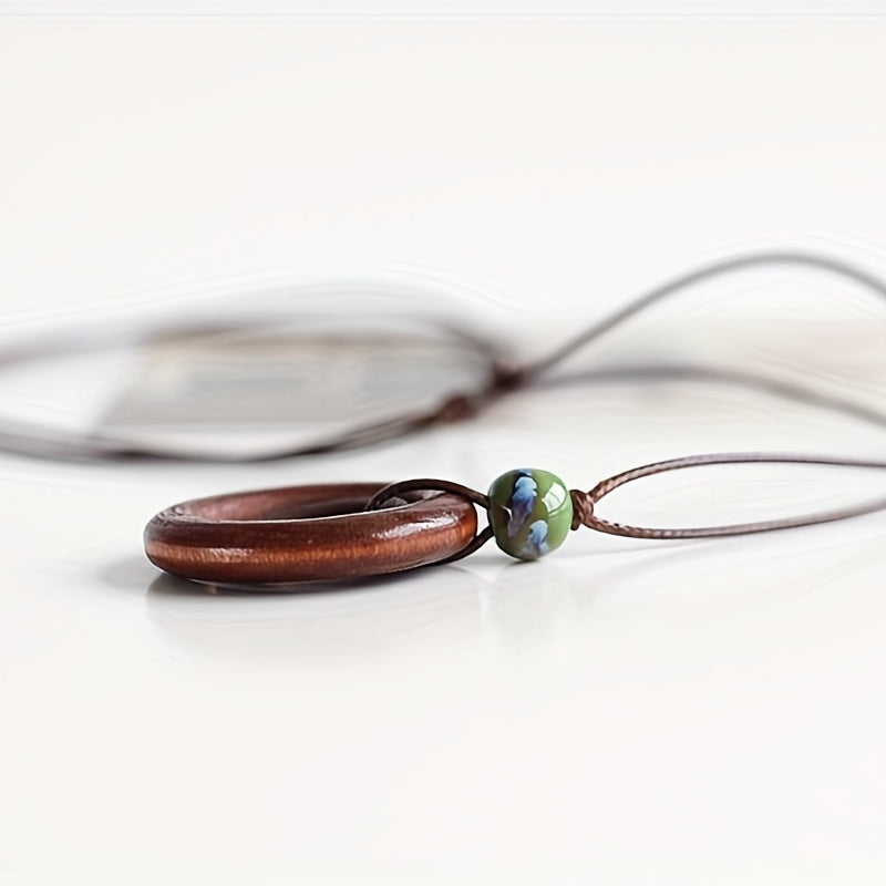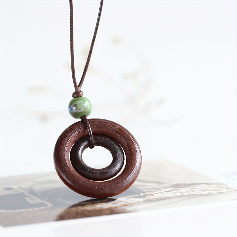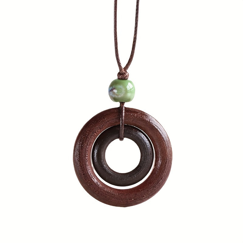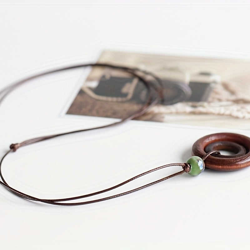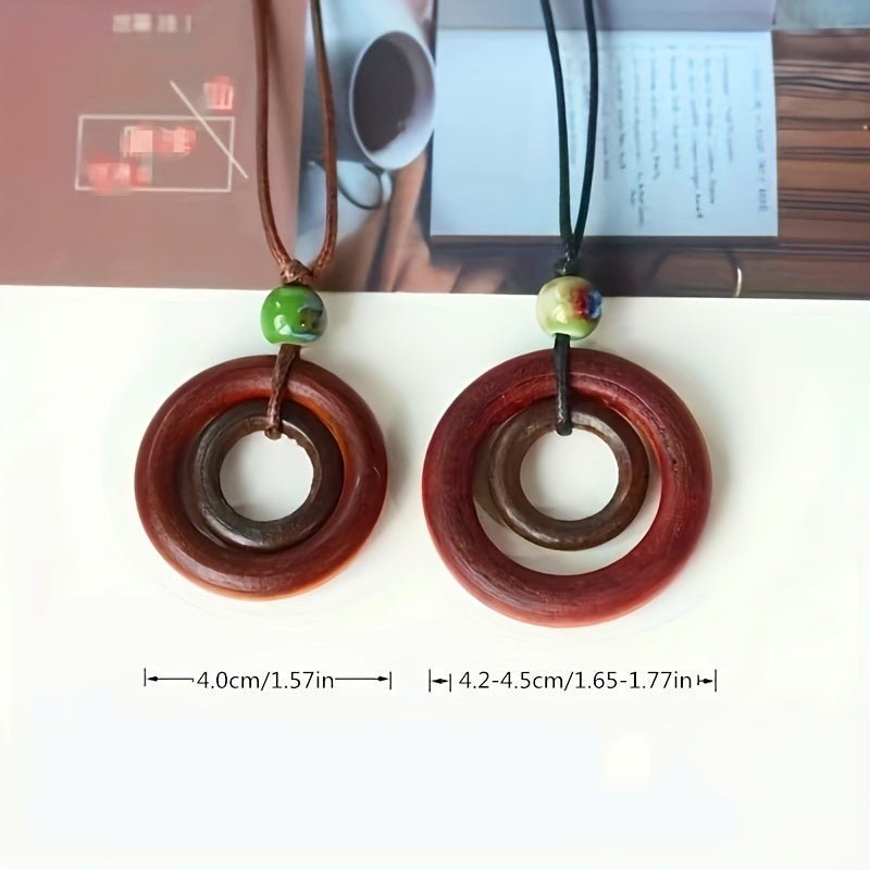 Add a touch of retro style to your outfit with this creative wooden circular knitting necklace. Perfect for pairing with long sweaters and dresses.