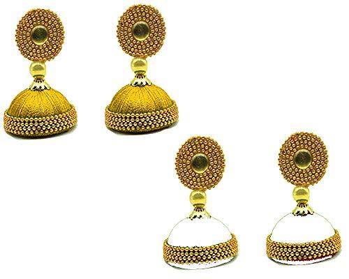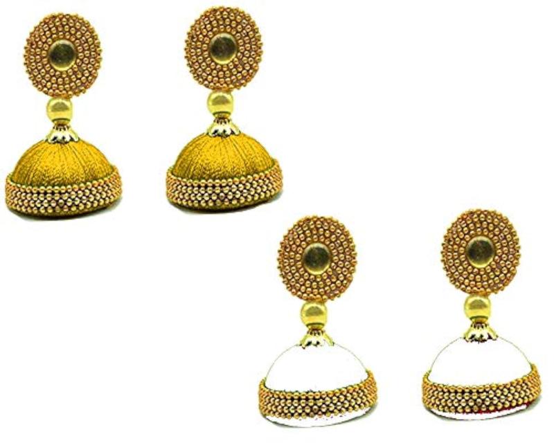 Add a touch of elegance to your ethnic wear with these beautiful golden silk jhumki earrings. Available in various colors and made with silk dori, these jhumkis are perfect for weddings, festivals, and special occasions.