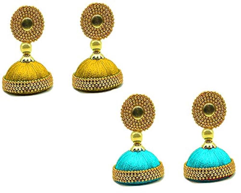 Add a touch of elegance to your ethnic wear with these Golden Silk Jhumki Earrings. The combination of silk and dori in vibrant colors gives them a unique and stylish look.