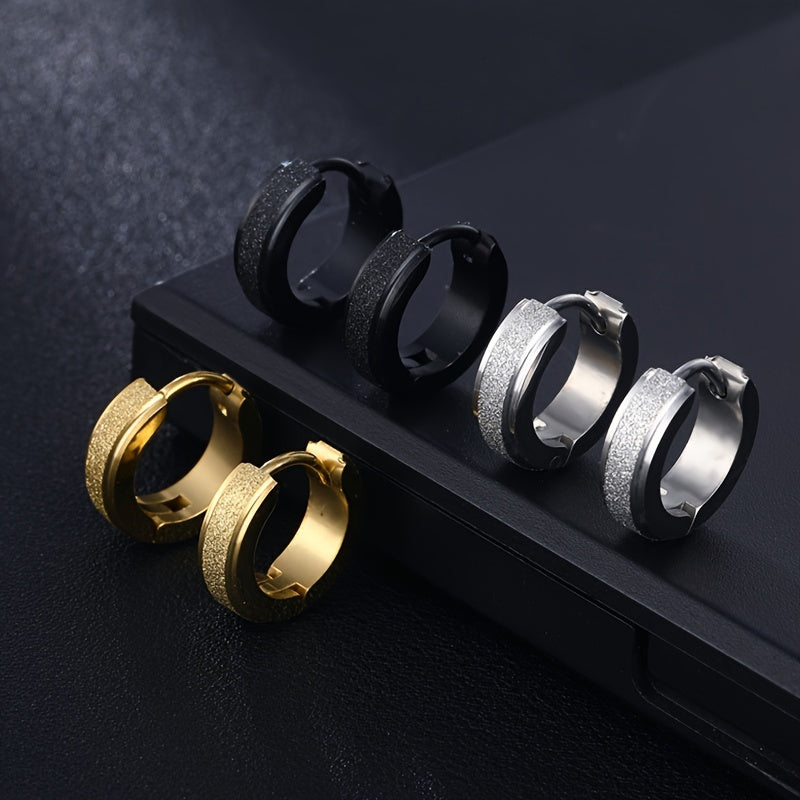 Add a touch of personality with this classic frosted ear ring made of titanium steel. The fire pressed sand step design adds a unique charm to your look.