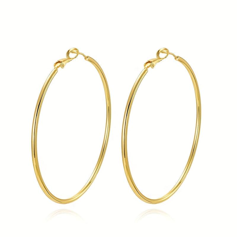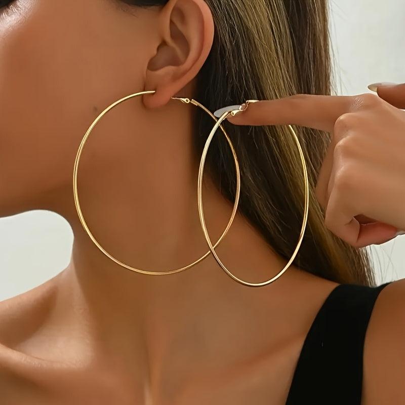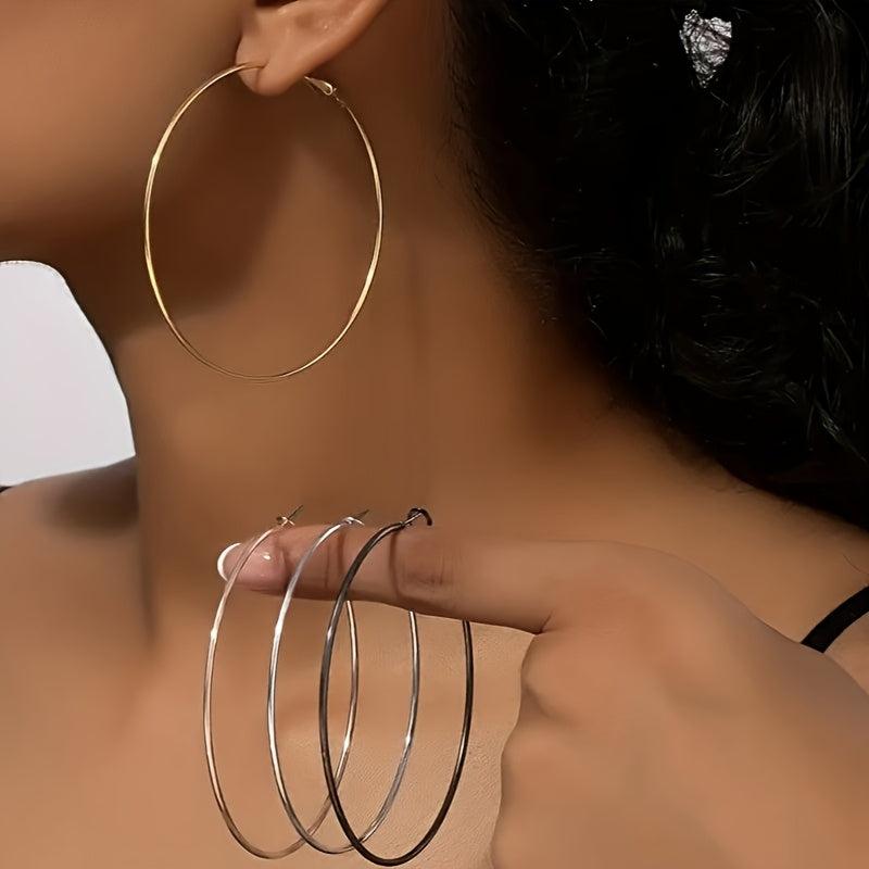 Make a bold fashion statement with these exaggerated large circle earrings. The glossy metal finish adds a touch of glamour to any outfit.