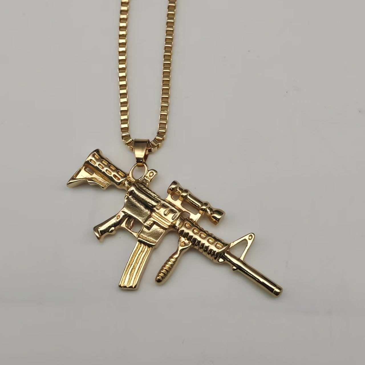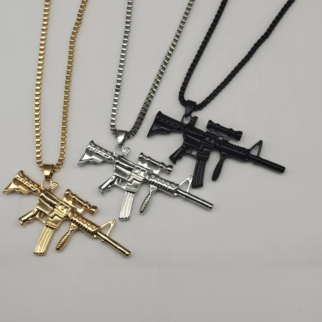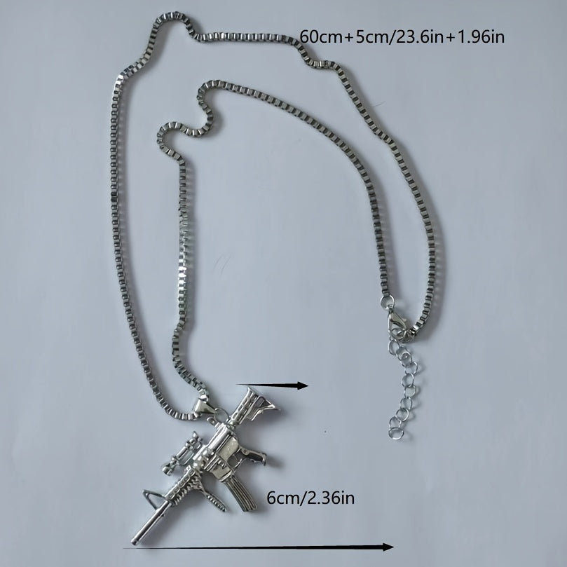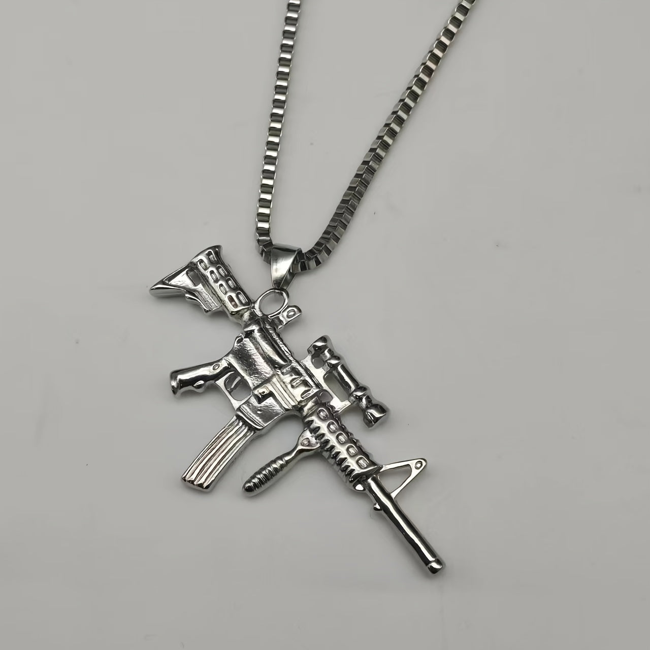 Add style to your outfit with this military-inspired submachine gun pendant necklace. Perfect for fans of European and American military fashion.