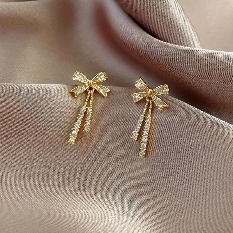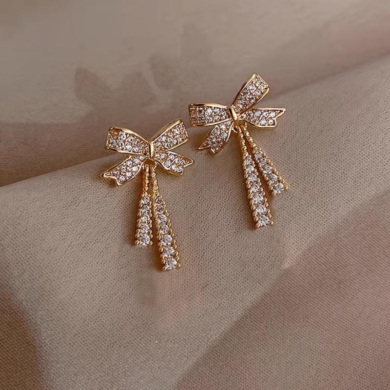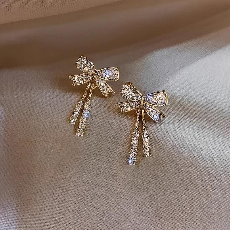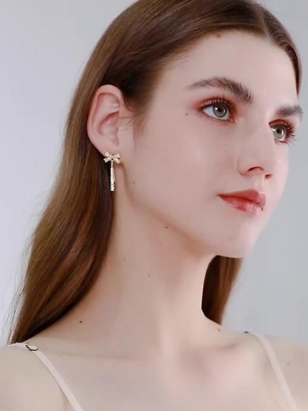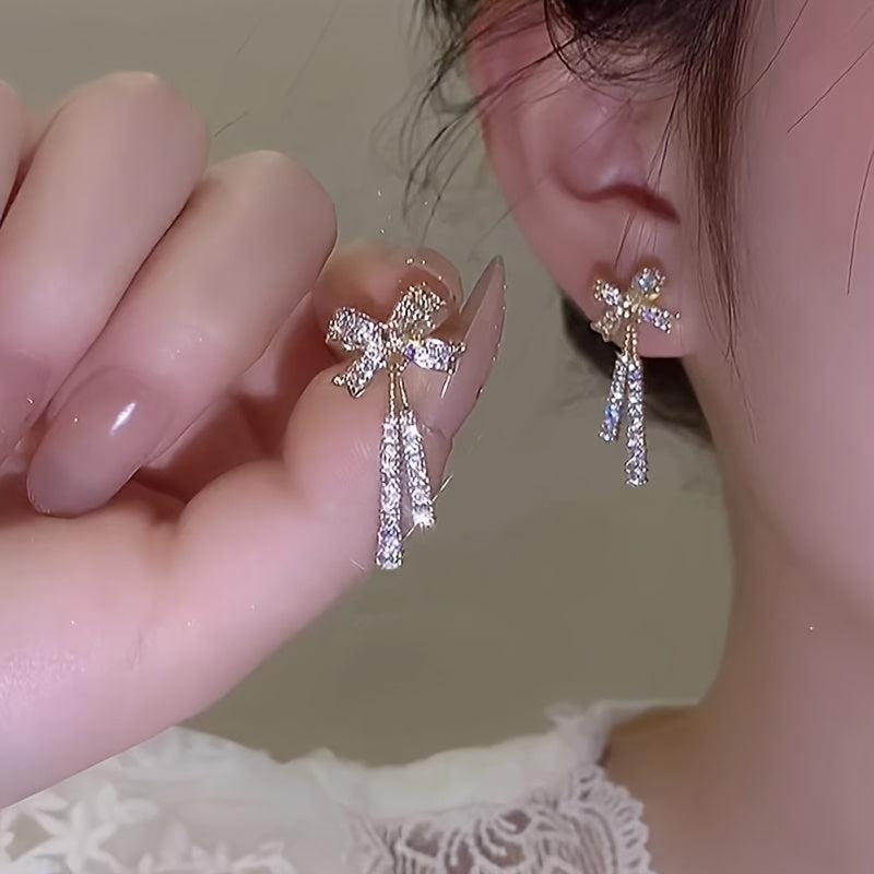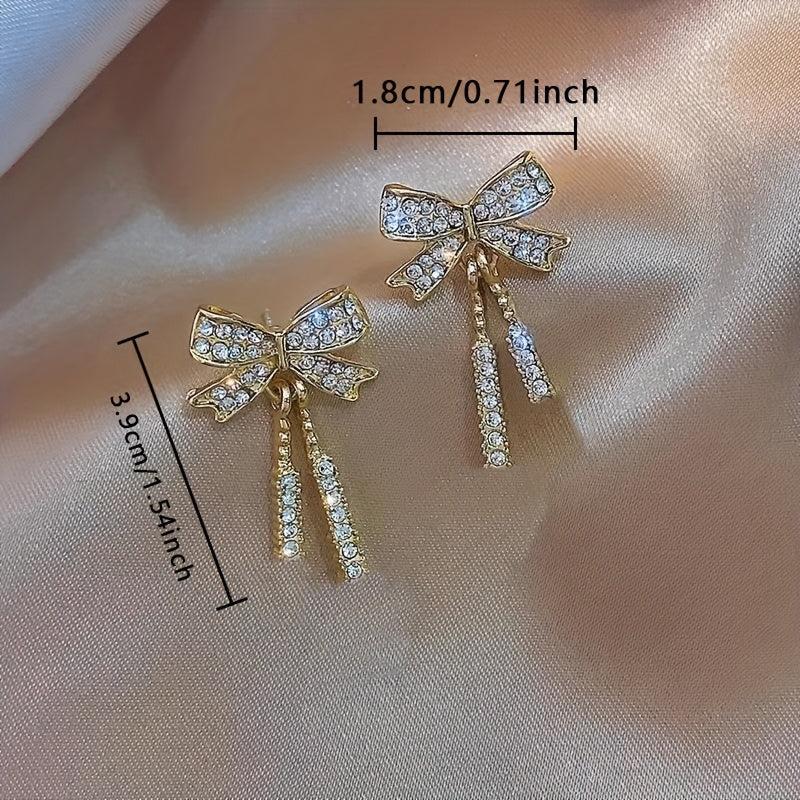 Elegant pair of earrings with sparkling rhinestone embellishments, perfect for weddings, parties, daily wear, and special occasions. Made of zinc alloy.