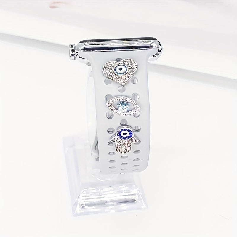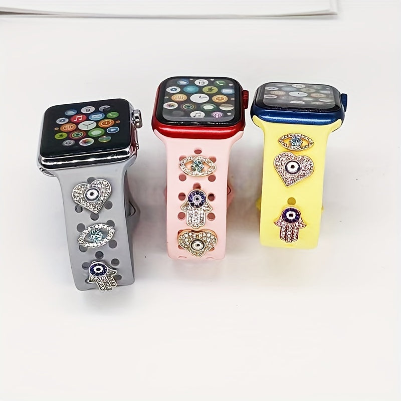 Add a touch of sparkle to your smartwatch strap with these Evil Eye series decorative accessories. Perfect for kids, holiday wear, and special occasions.