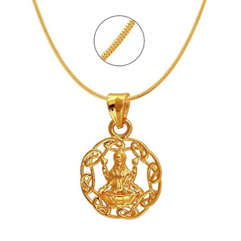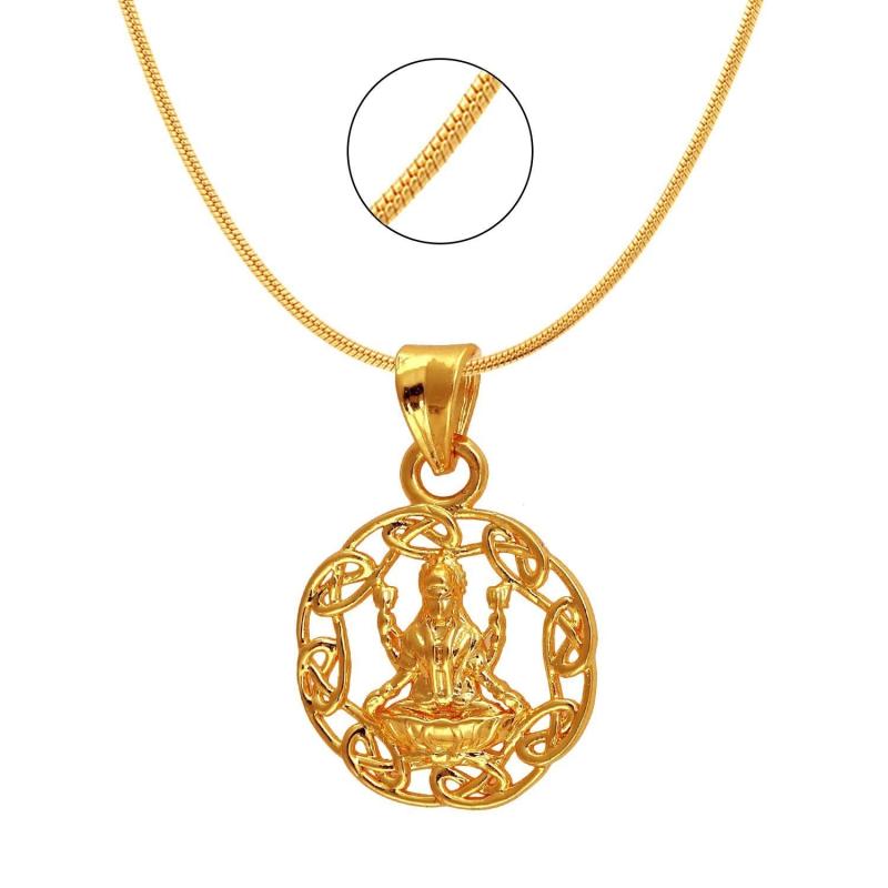 Exa Collection Laxmi Circle Plated Religious God Pendant with Chain