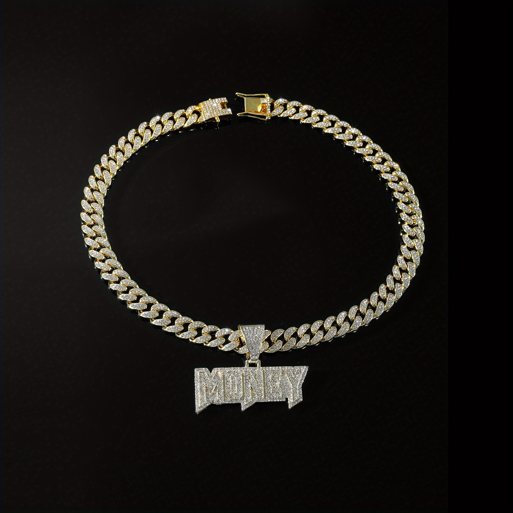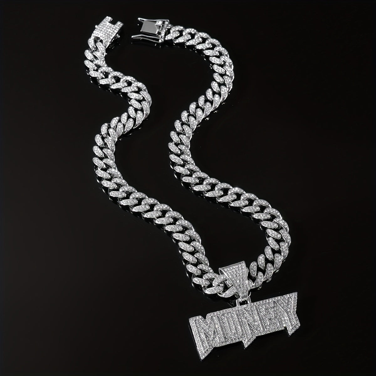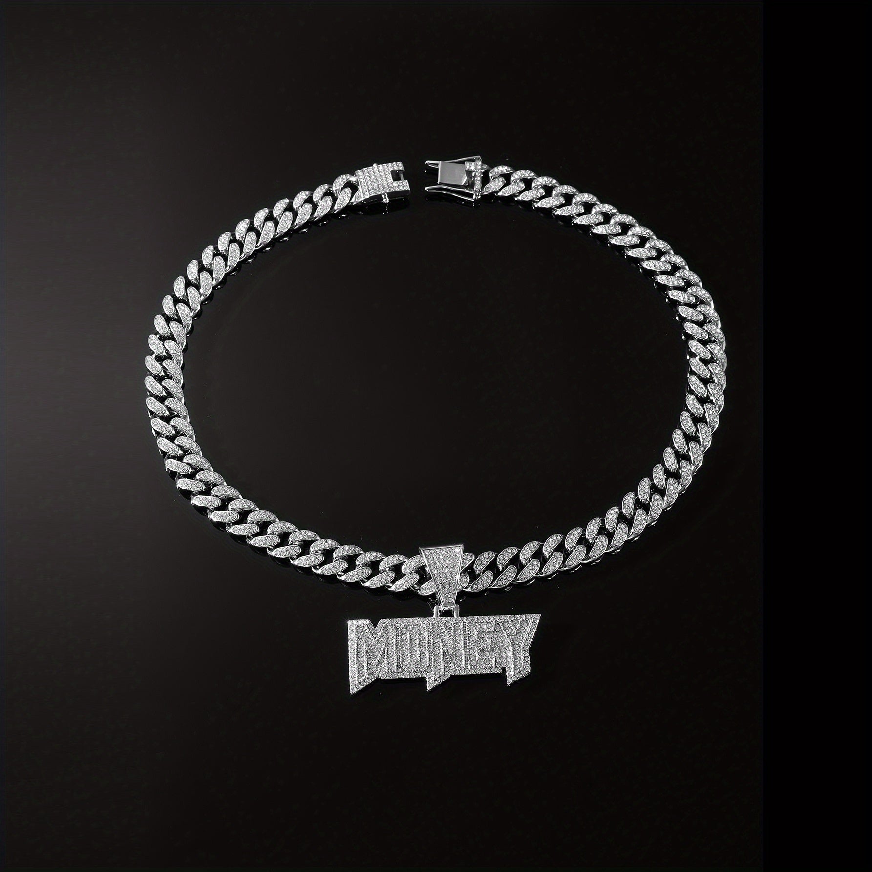 Make a bold statement with this hip hop clavicle chain necklace featuring a full of faux diamonds letter pendant. Perfect for adding a touch of hipster jewelry to your look.