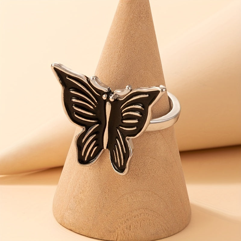 Add a touch of boho style to your look with this unique oil dripping butterfly ring. Made from high-quality alloy, this ring is a statement piece that will elevate any outfit.