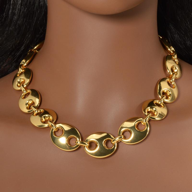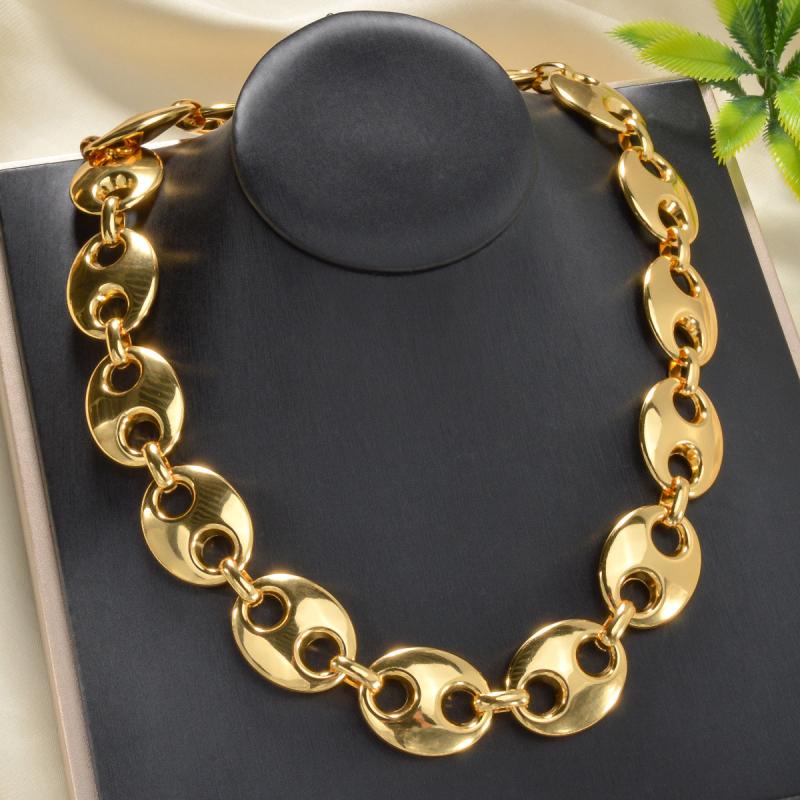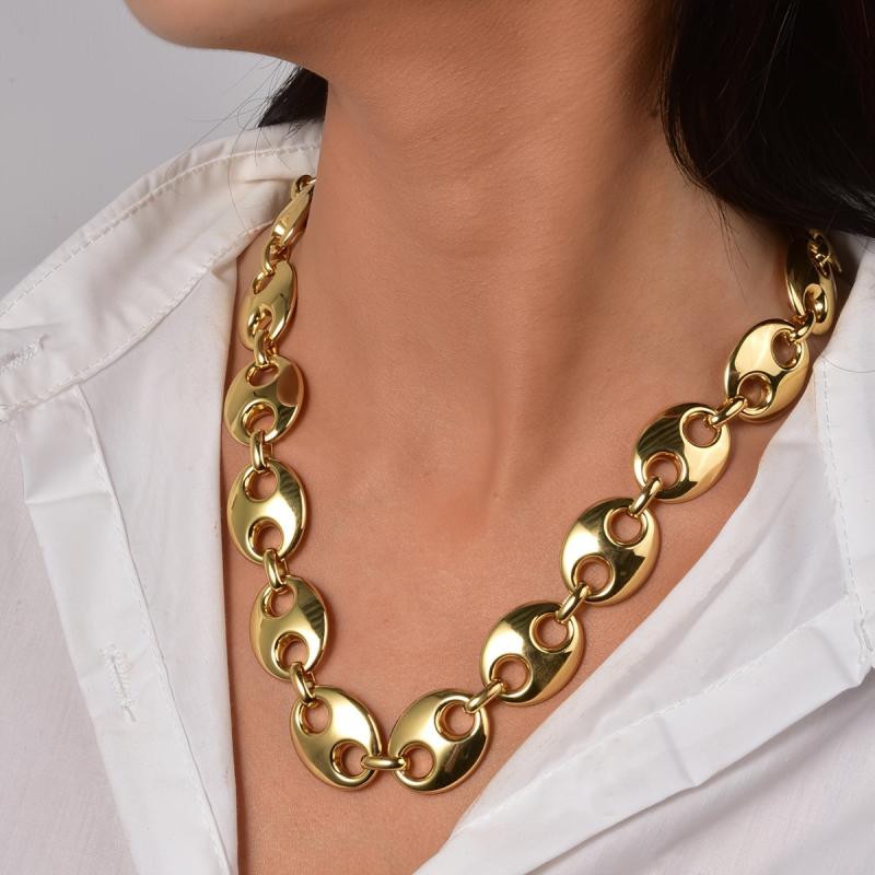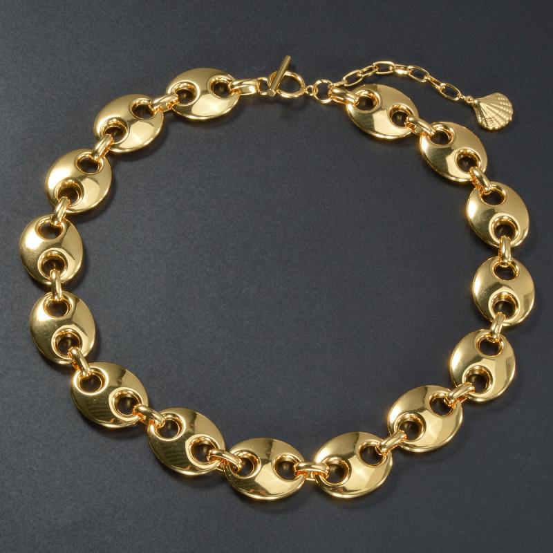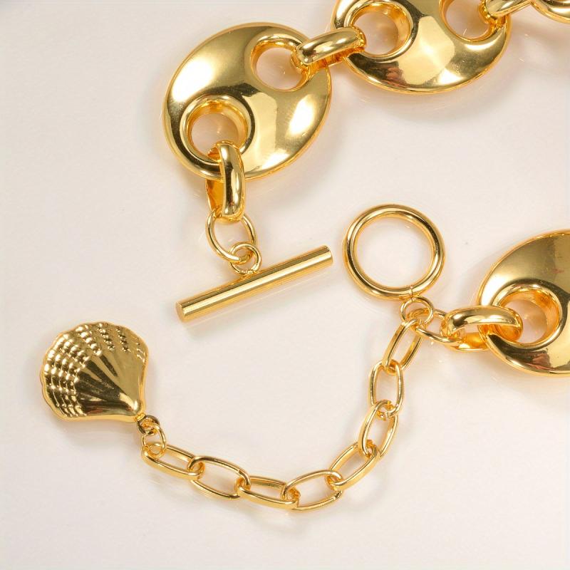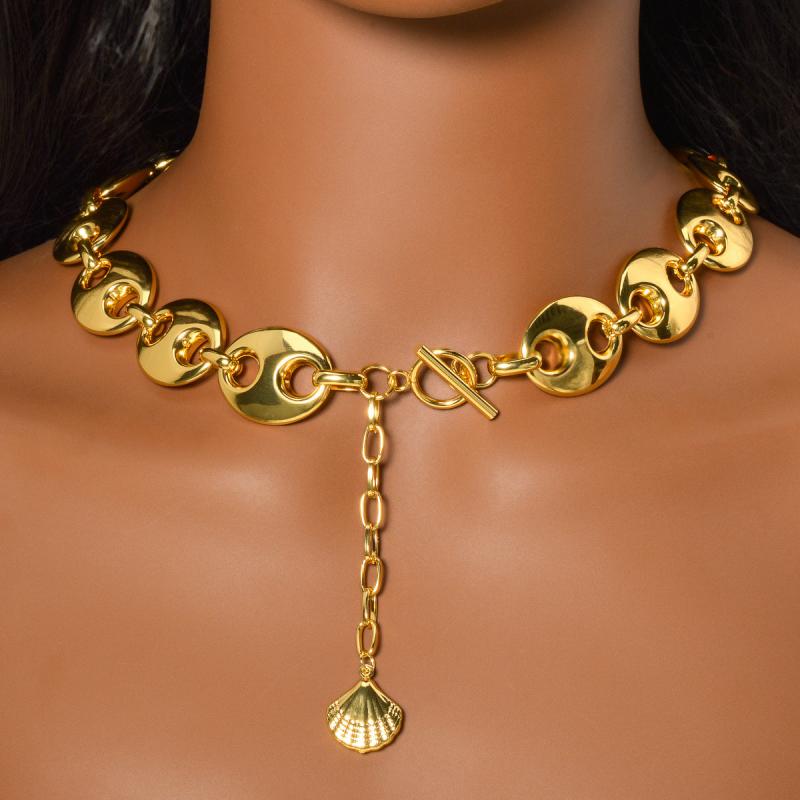 This OT buckle necklace features a wide geometric shell tail chain, perfect for hip hop and punk styles. Suitable for both men and women.