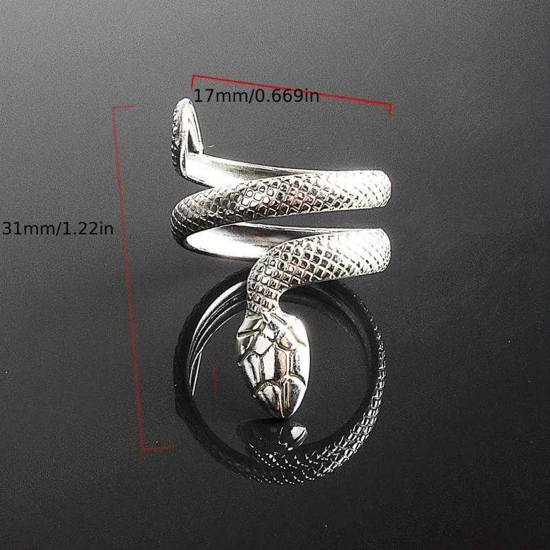 This unique ring features a snake-shaped design made of durable titanium steel. Ideal for both men and women with an adjustable opening.
