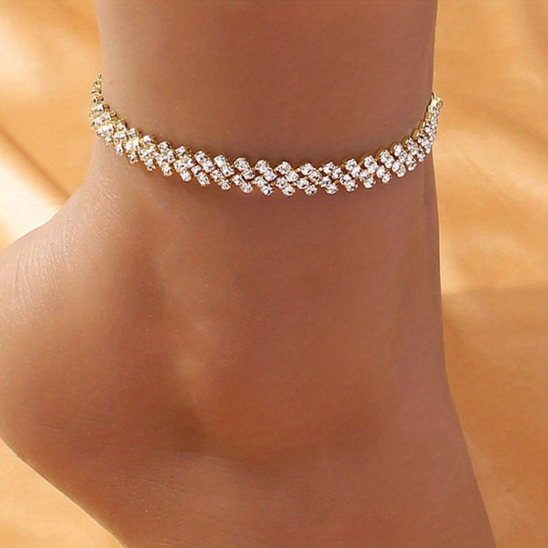 Add a touch of glamour with this artificial diamond rhinestone anklet. Perfect for beach outings and versatile styling.