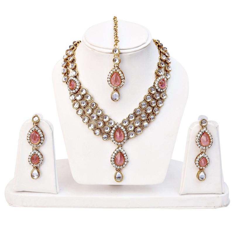 Elegantly designed Kundan necklace set that exudes traditional charm and grace.
