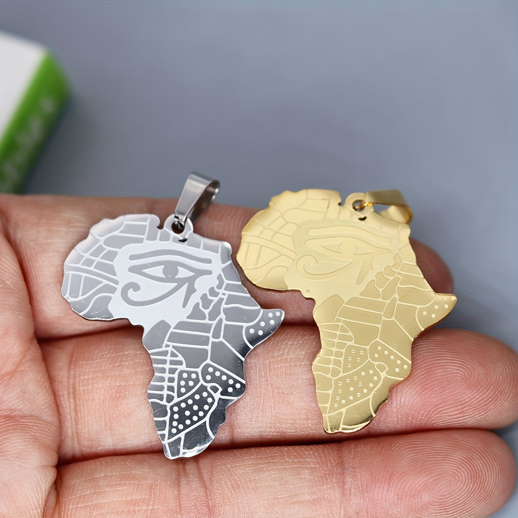 This stainless steel charm features the Golden Eye Of Horus design on an Africa map. Perfect for crafting necklaces, bracelets, and other jewelry.