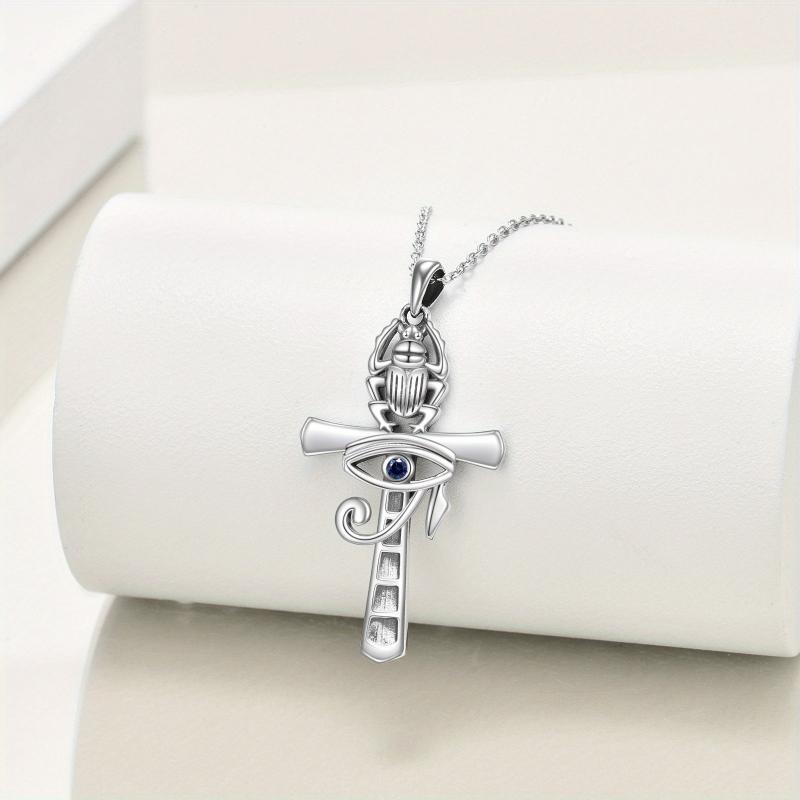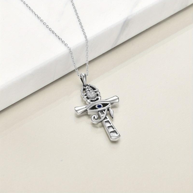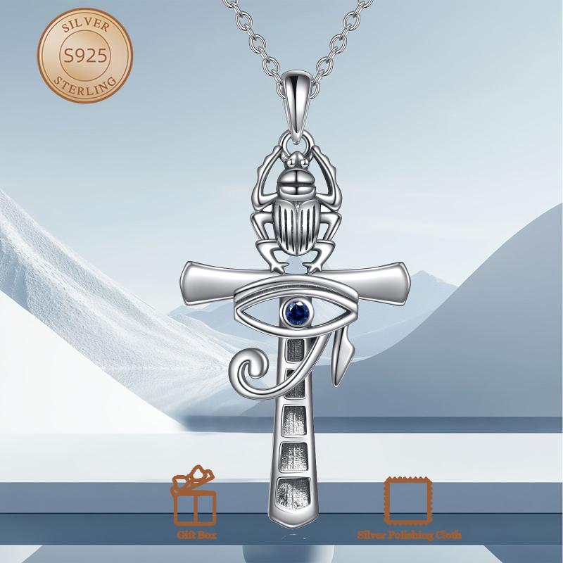 This stunning necklace features ancient Egyptian symbols like the Eye of Horus, Ankh, and Scarab. Crafted from 925 sterling silver, this unique piece is a perfect gift for men, women, and mothers.